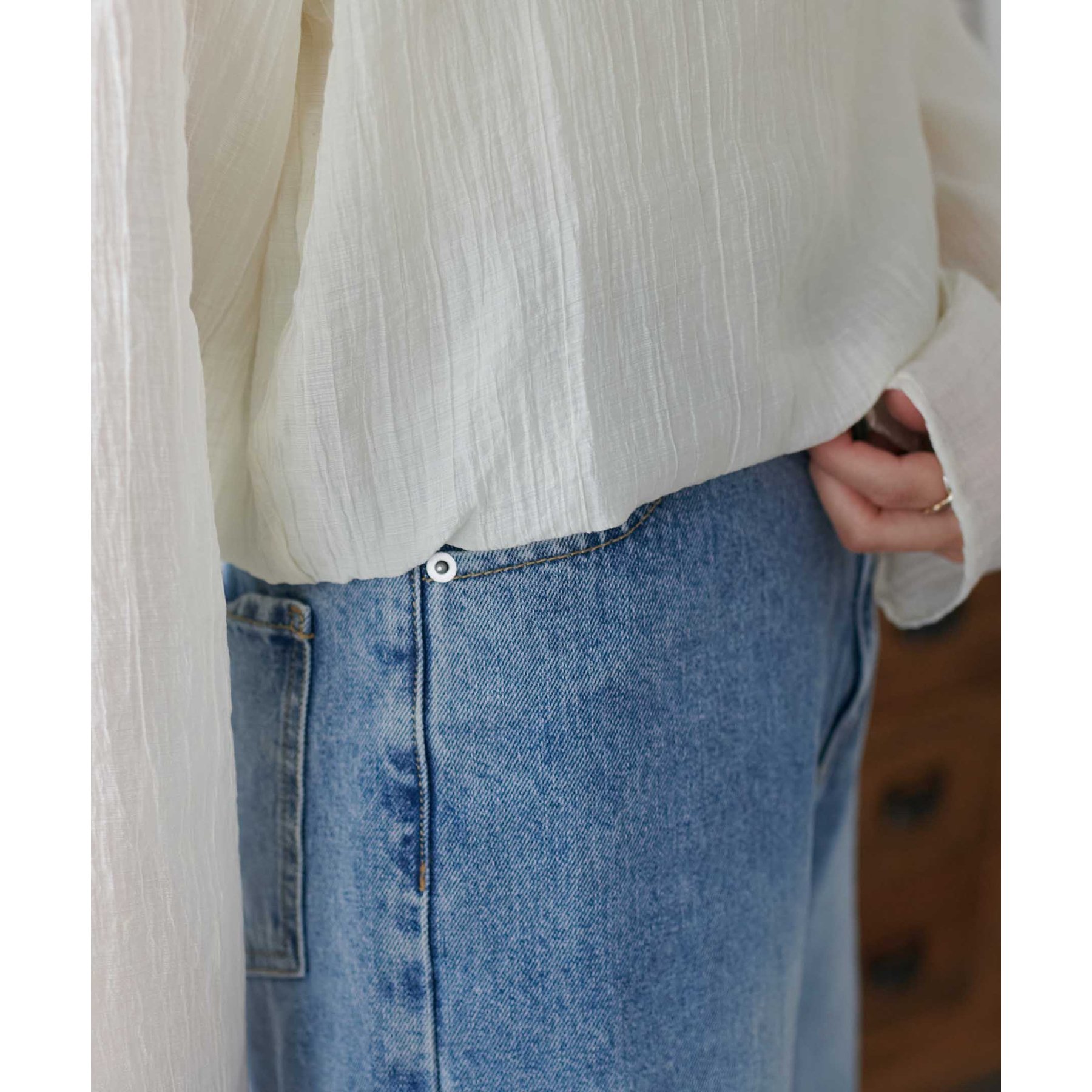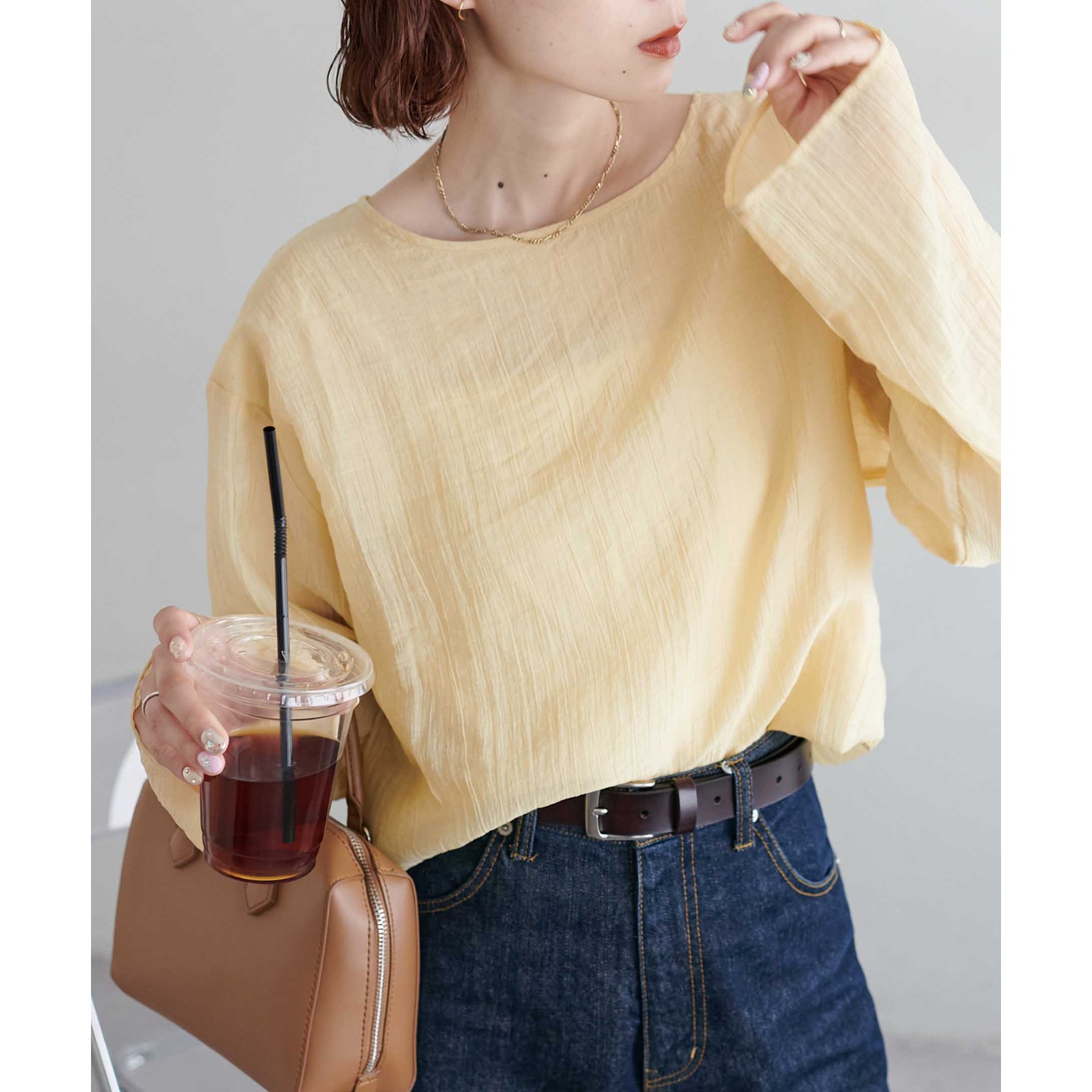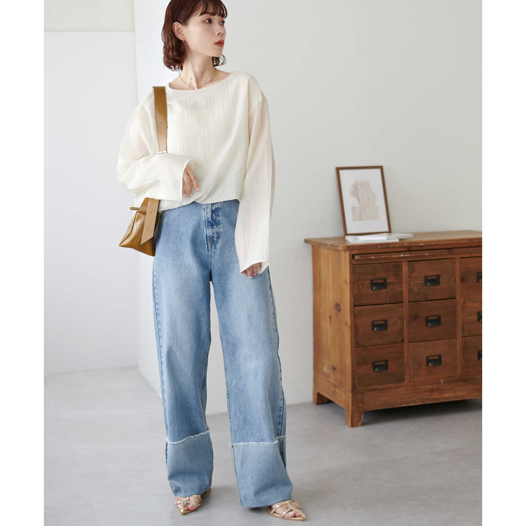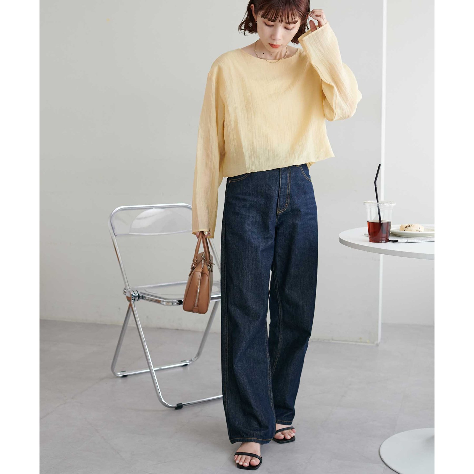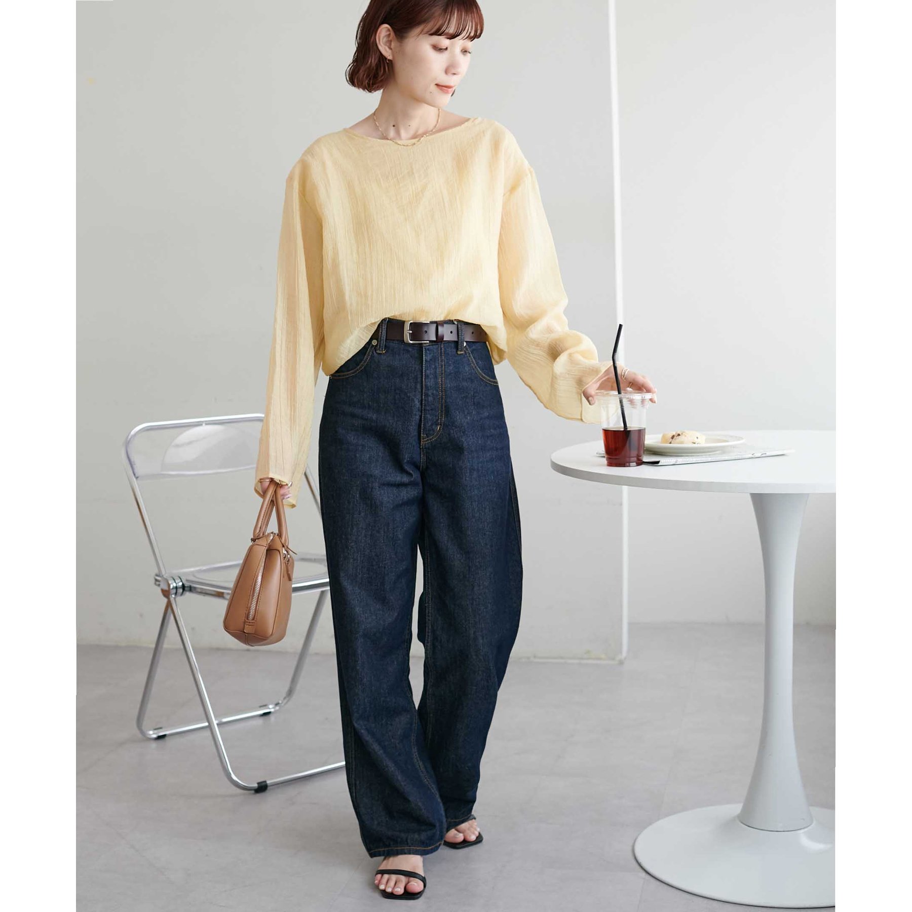 ・デニムでカジュアル、スラックスやタイトスカートで大人っぽくも着こなせる万能トップス