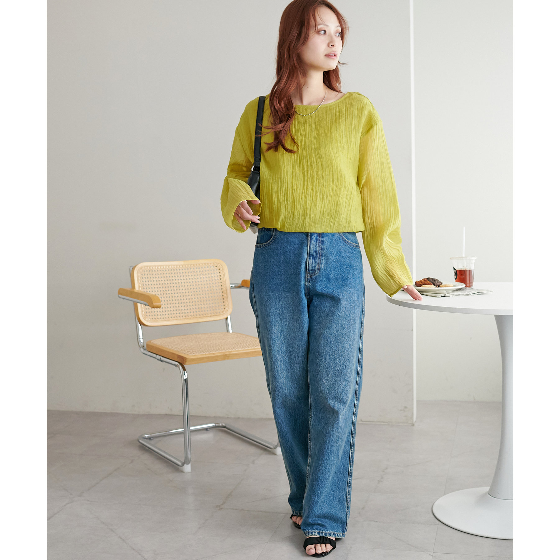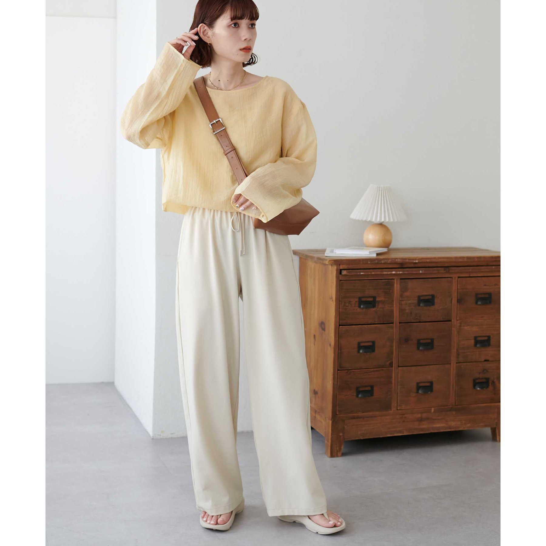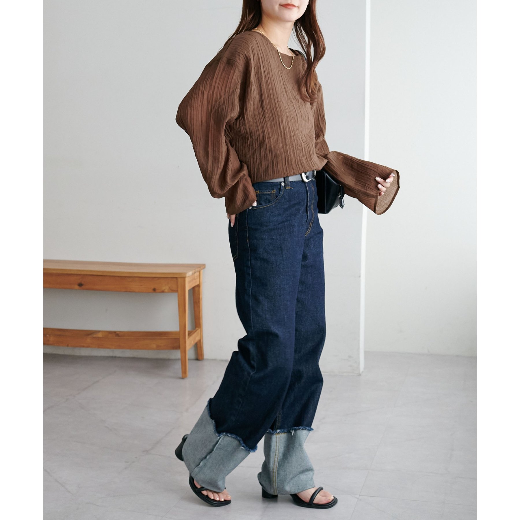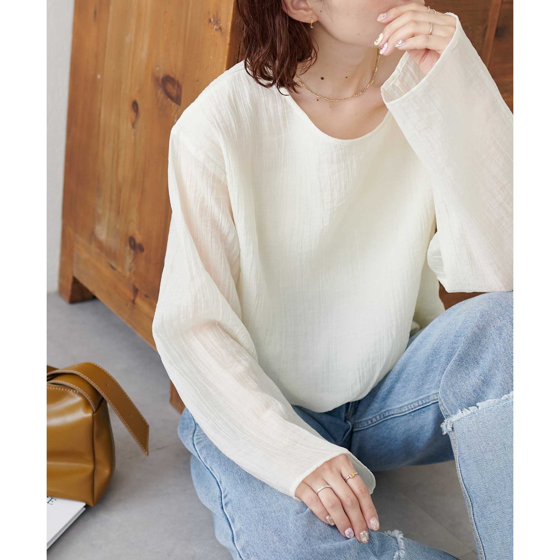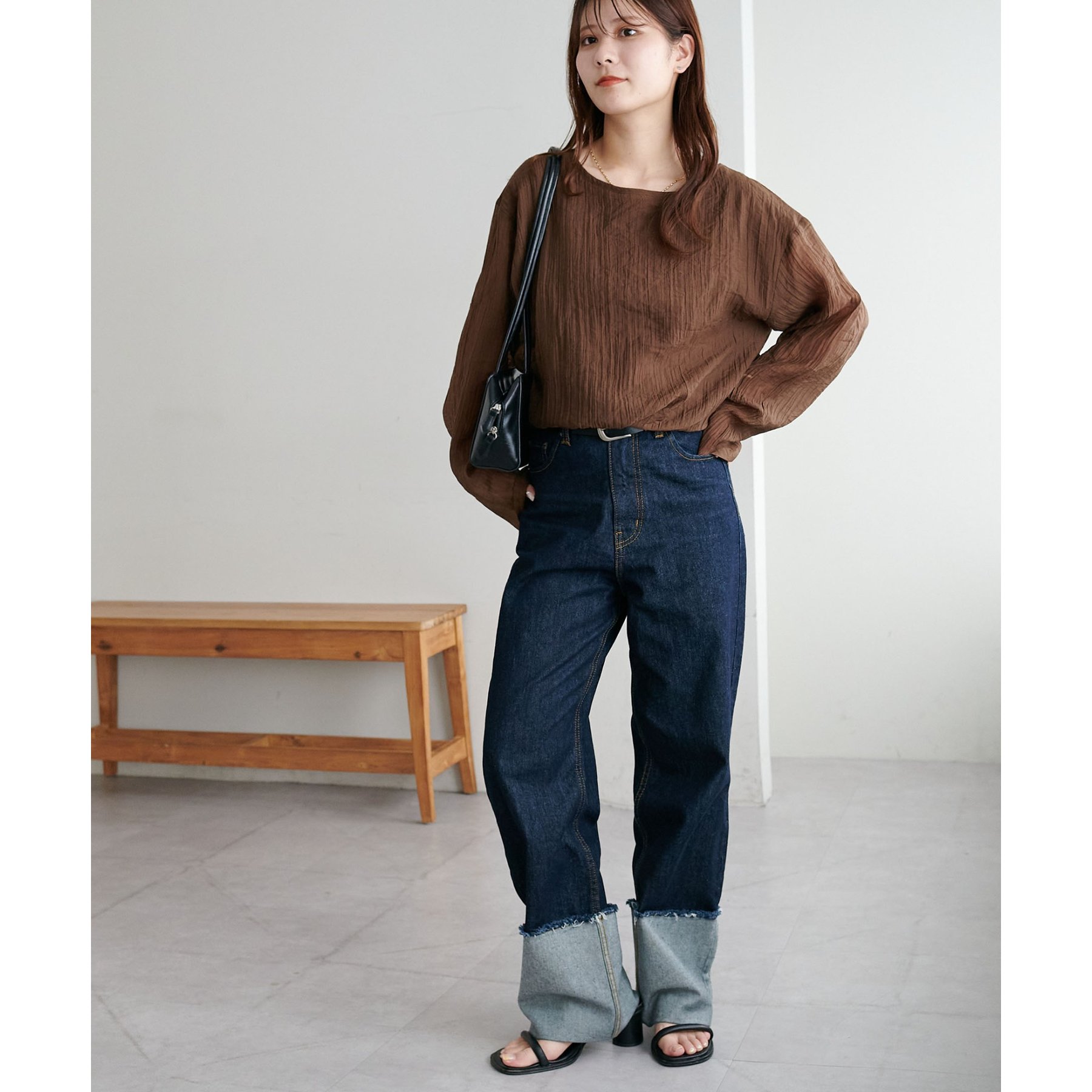 ・デニムでカジュアル、スラックスやタイトスカートで大人っぽくも着こなせる万能トップス
