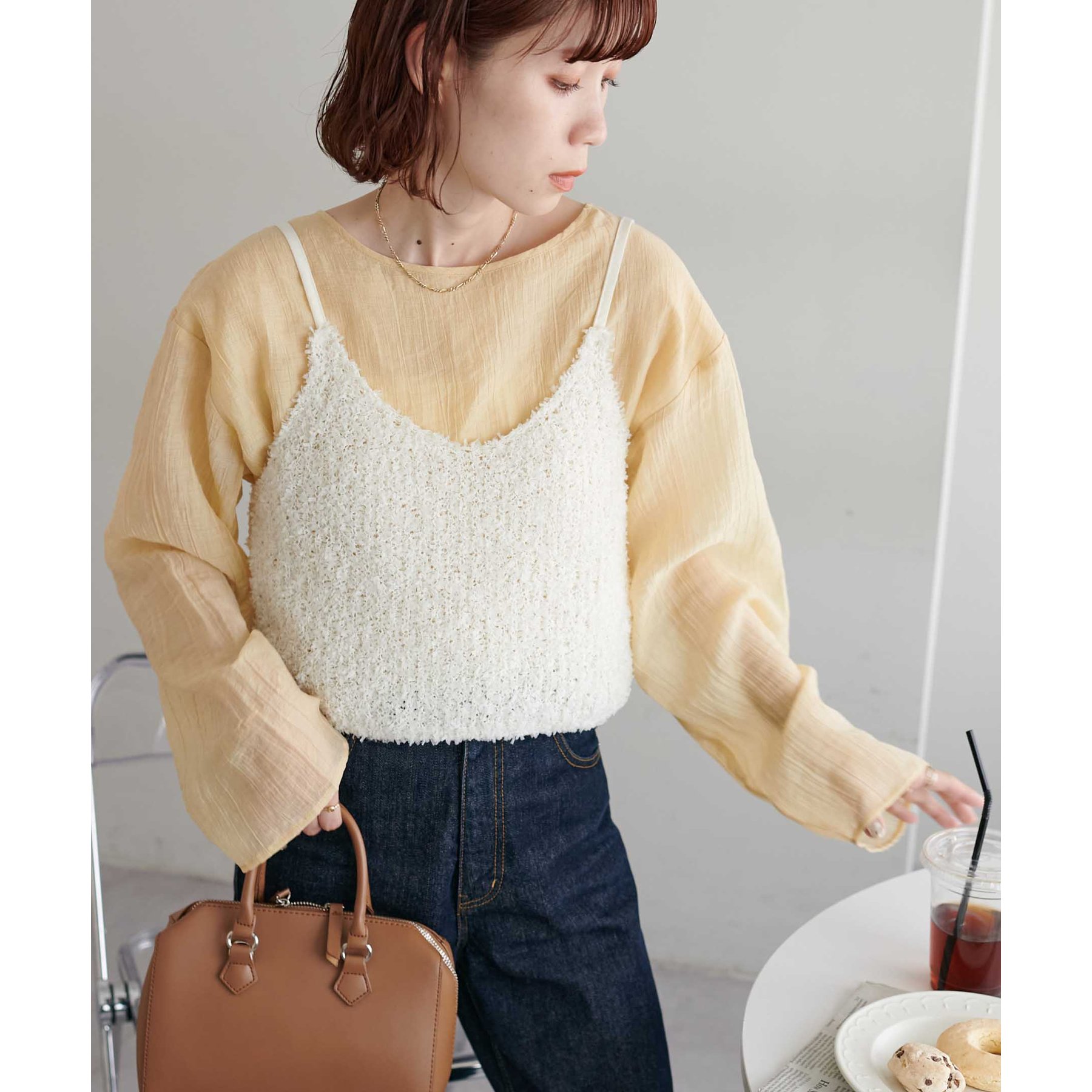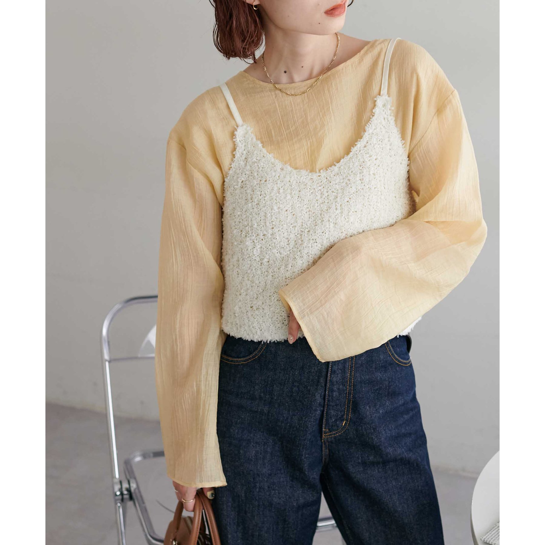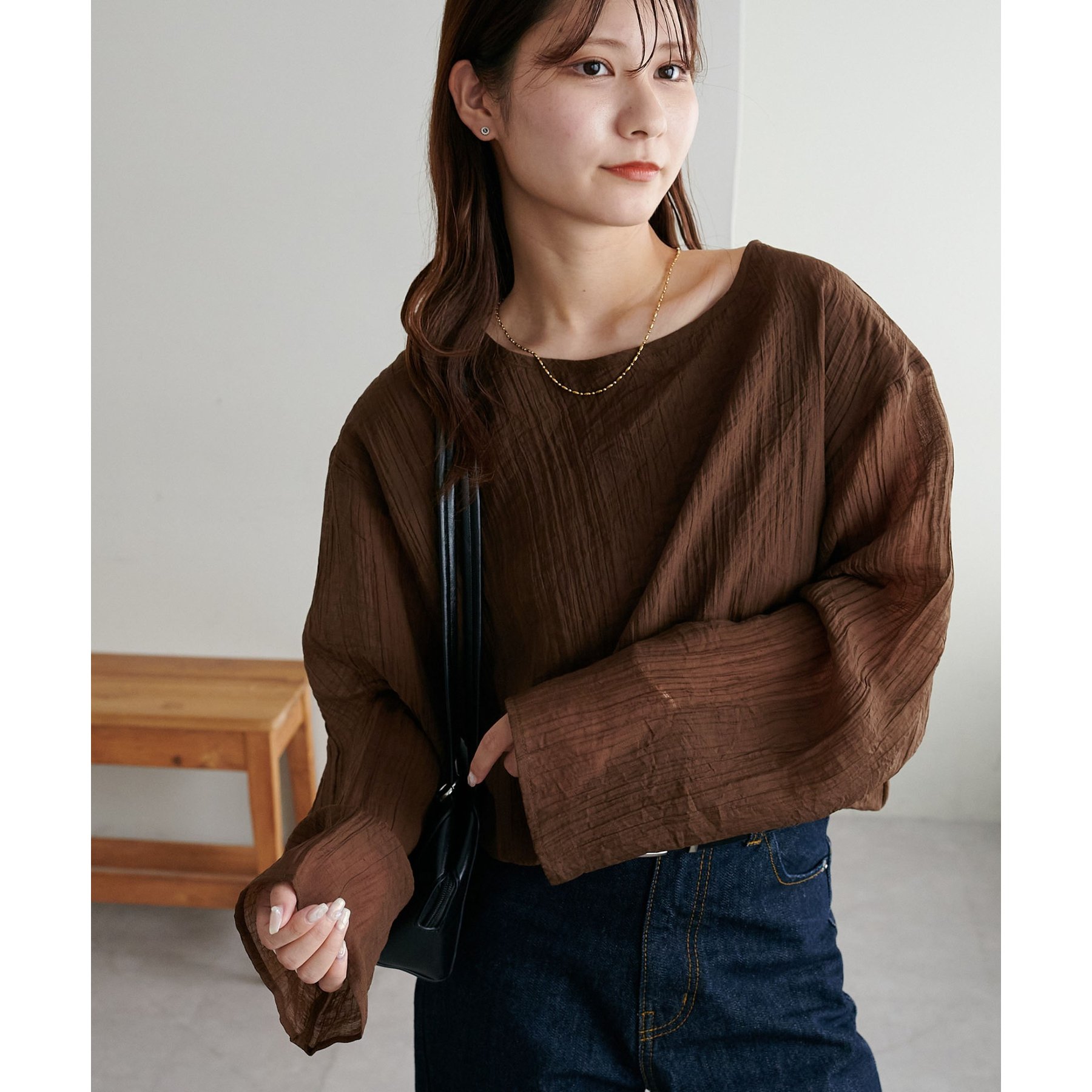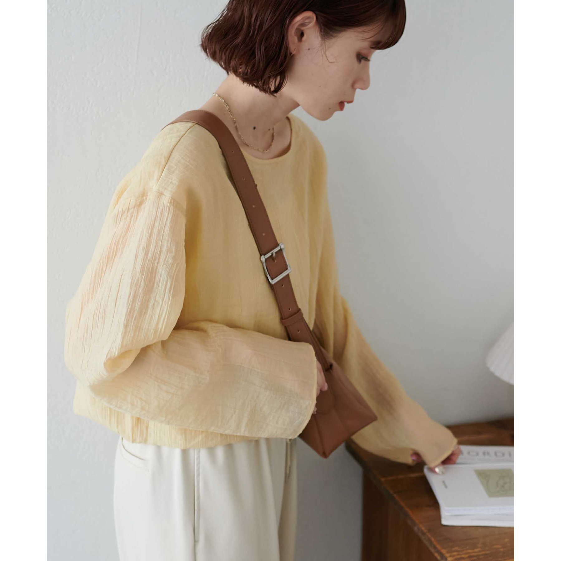 ・トレンド感のある表面感で、シンプルなボトムと合わせるだけで華やかな印象に