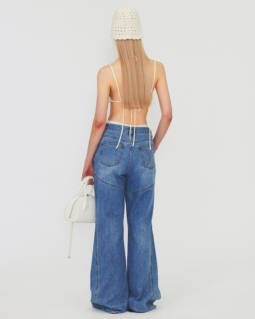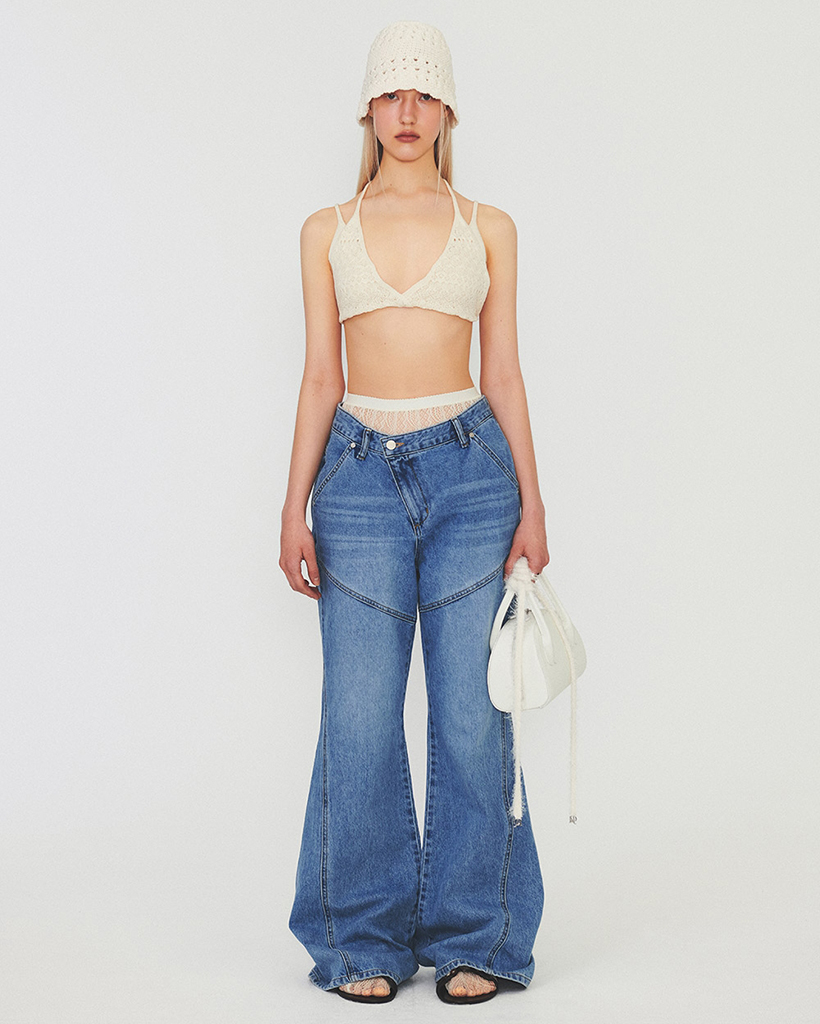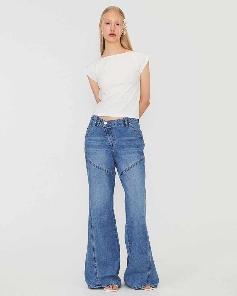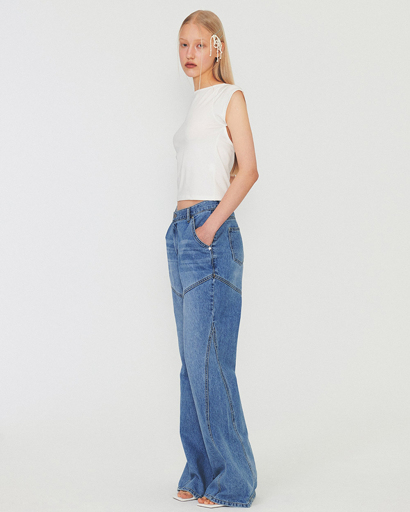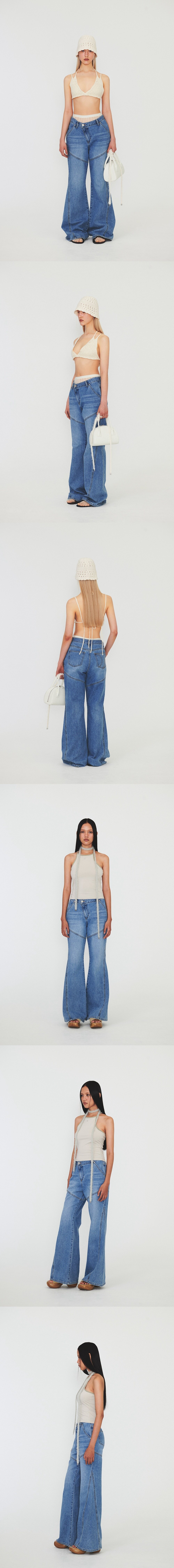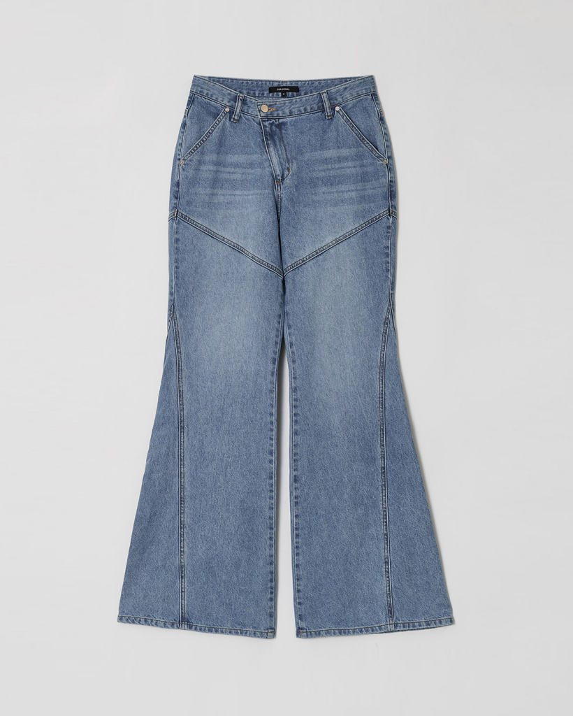 DIAGONAL BOOTS CUT DENIM PANTS (light blue)
