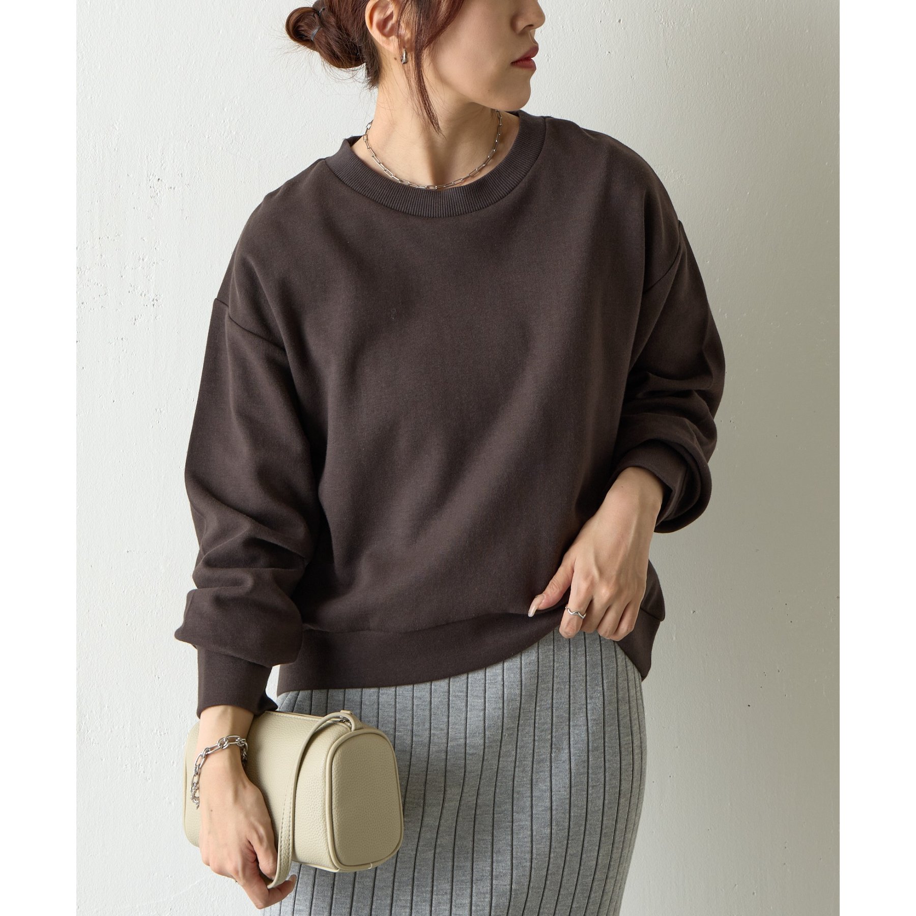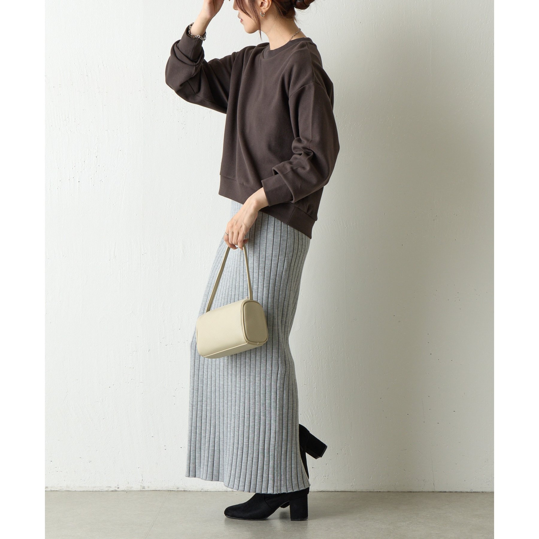丸みのあるフォルムが特徴的なコクーンデザインは、体型カバーを叶えながらも、女性らしい柔らかさと抜け感を演出します。