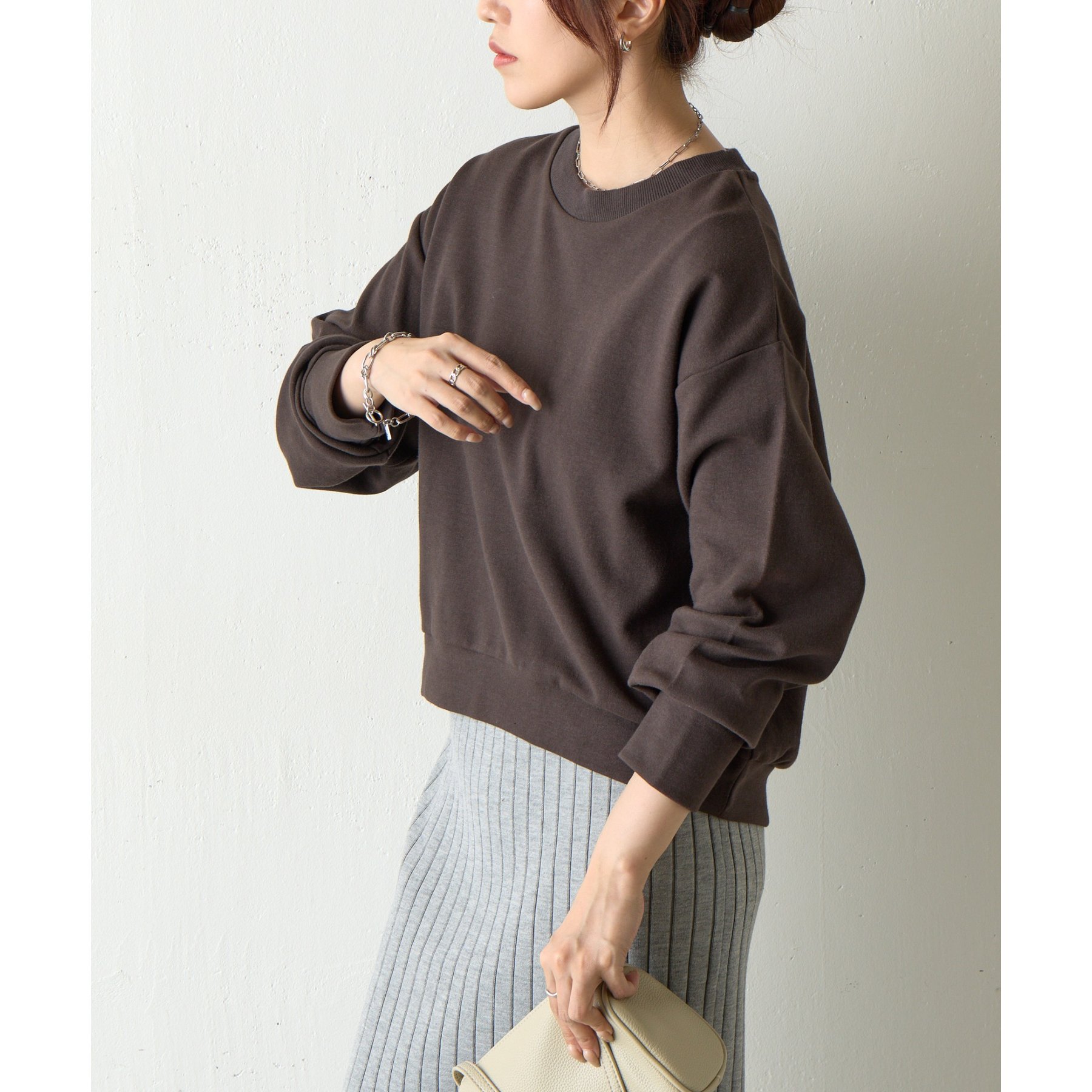 デニムなどと合わせてカジュアルにも、スカートと合わせてフェミニンにも、様々なアイテムと相性がいいトップスです。