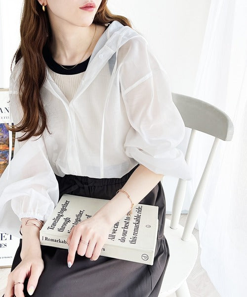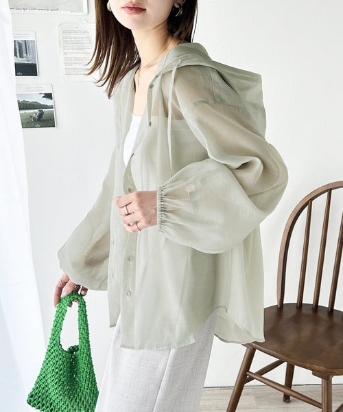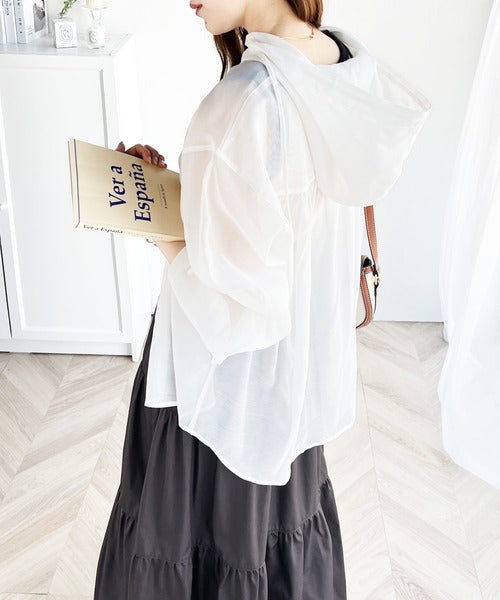 大胆なシアー素材でありながら、パーカーデザインなので取り入れやすく、