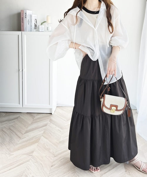 透け感のある素材なので、春はロンTや薄手のニットと合わせたり、