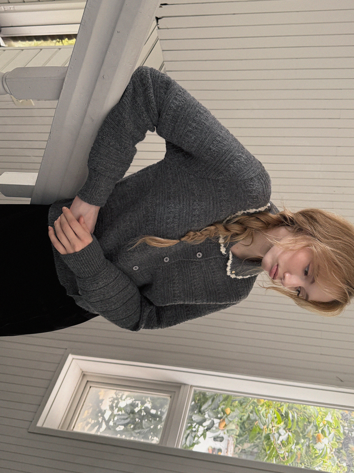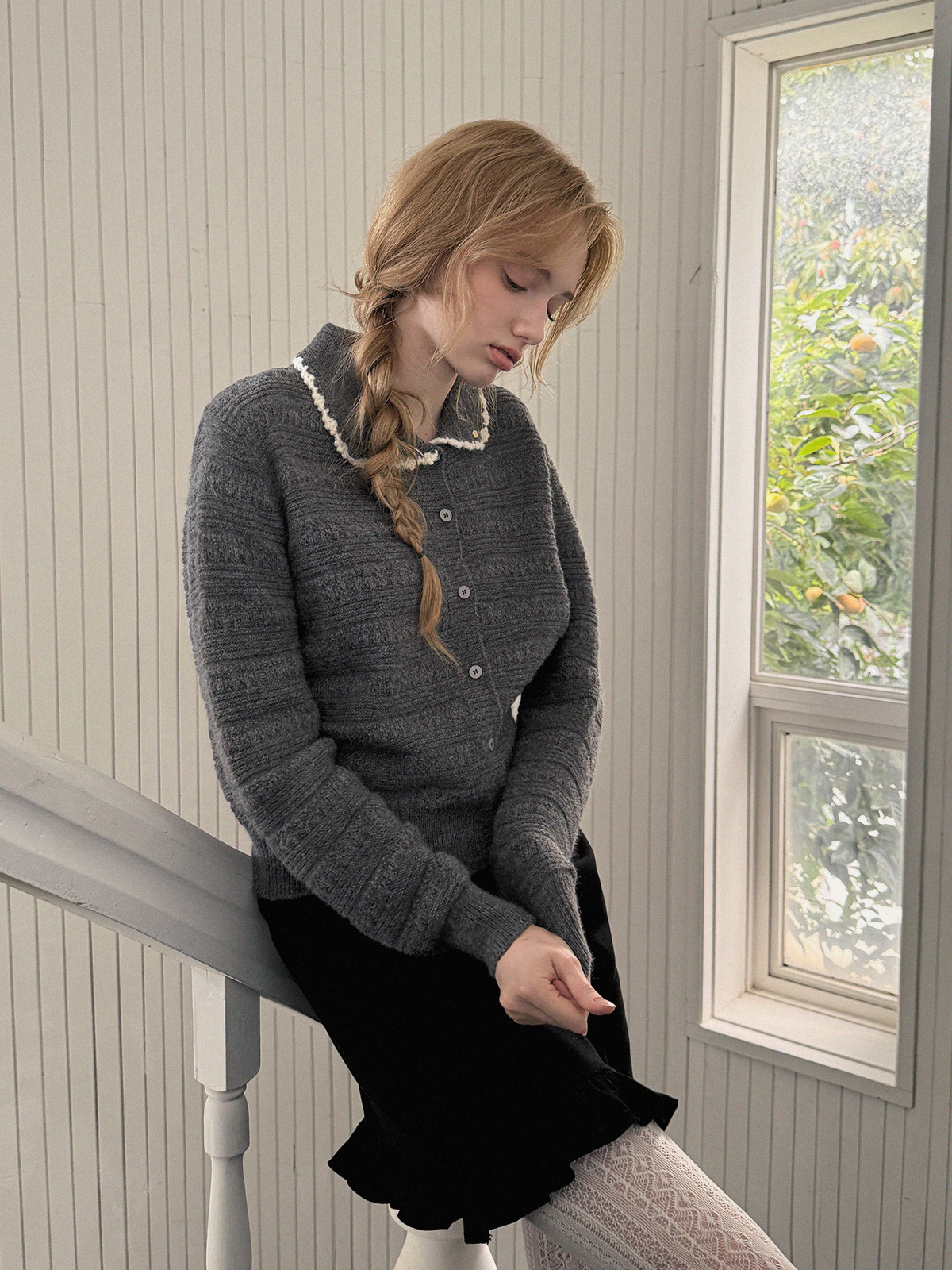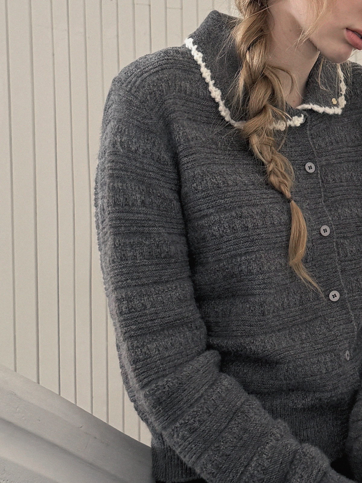 Molly Contrast Collar Pattern Knit Cardigan