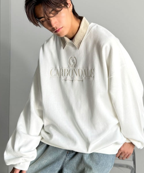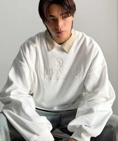 【Classical Origin】刺繍カレッジロゴ裏起毛スウェット/Embroidered College Logo Fleece Sweatshirt ao1330040