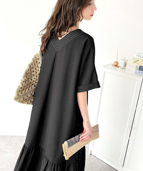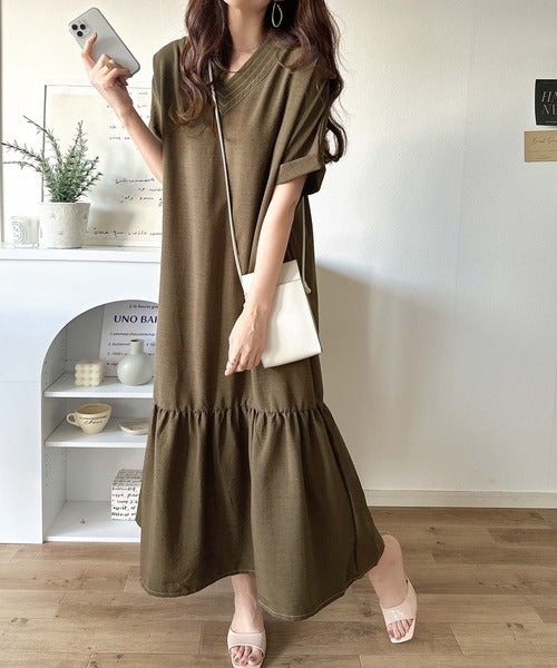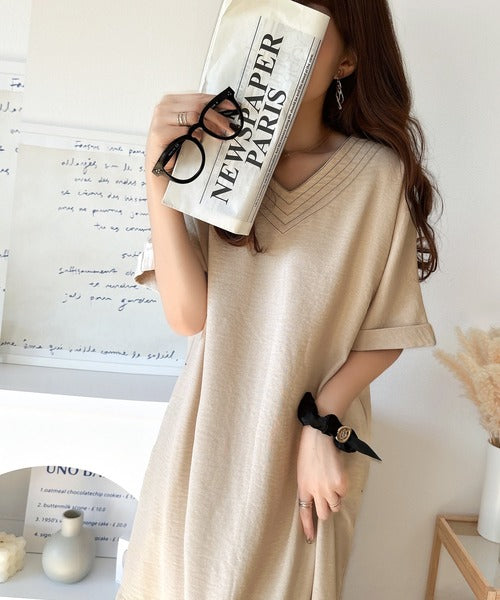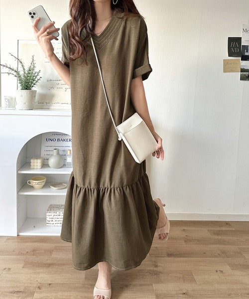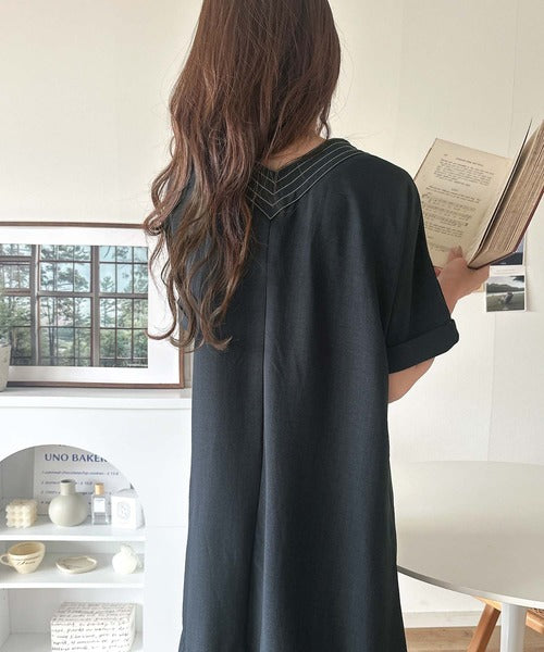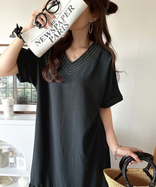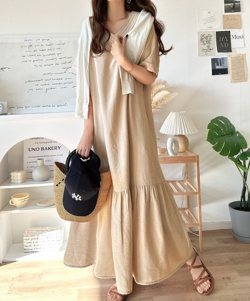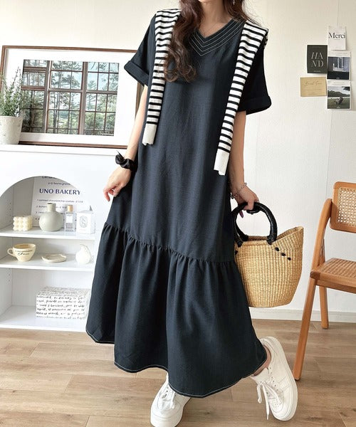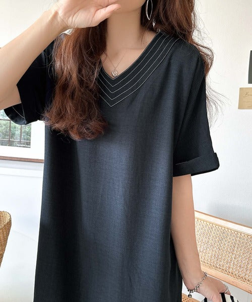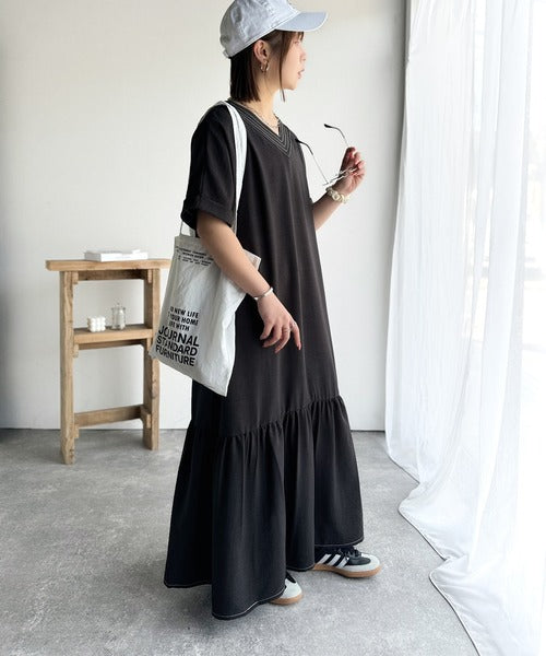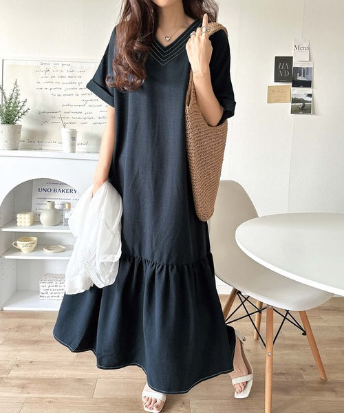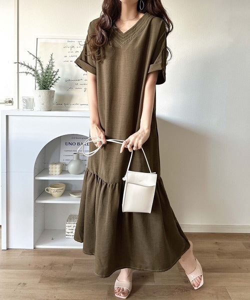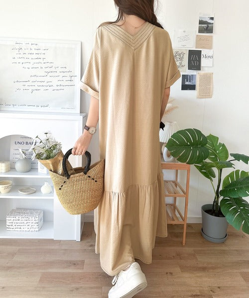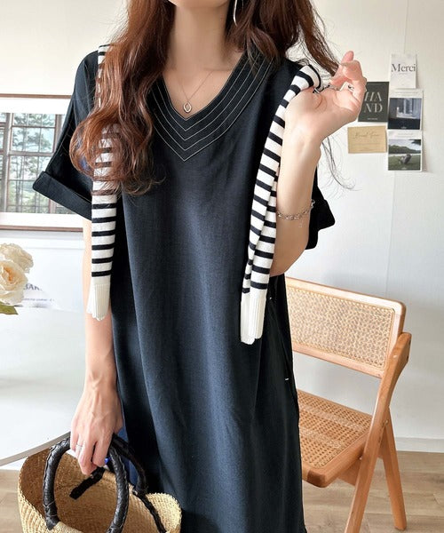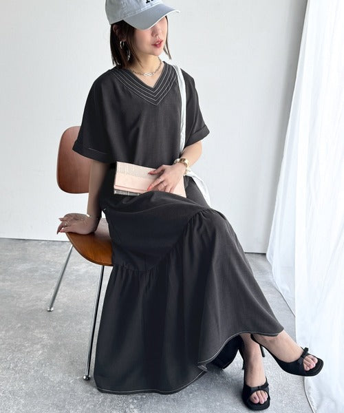 大人の抜け感。ステッチ使いVネックロングワンピース ce1260386