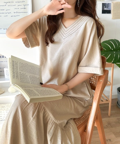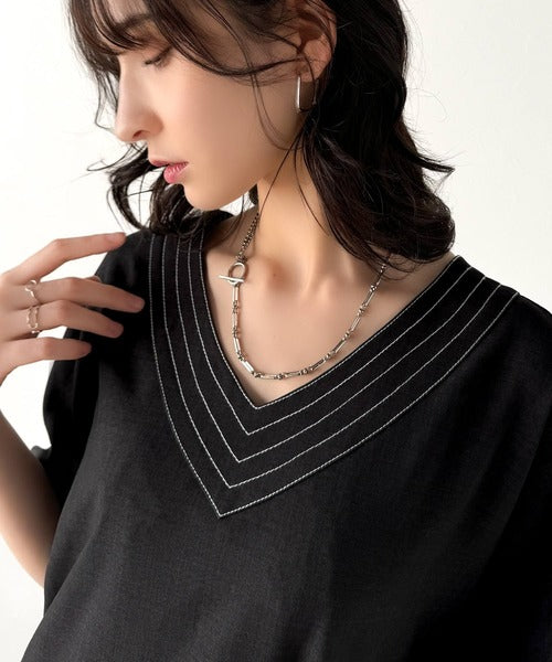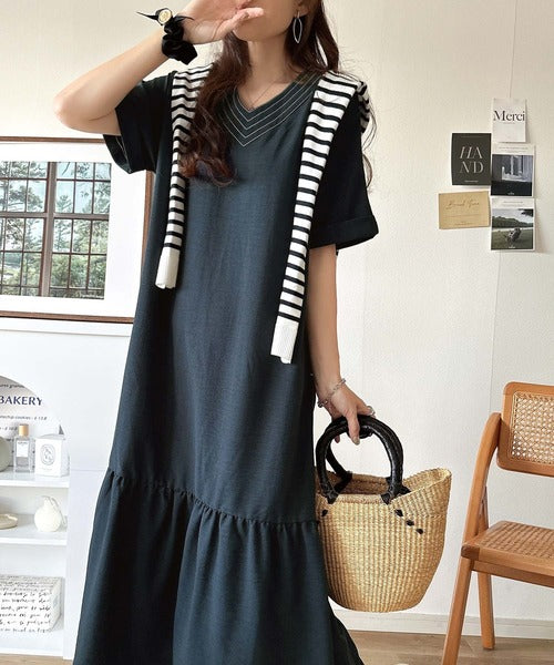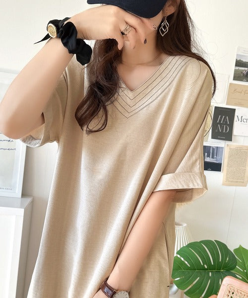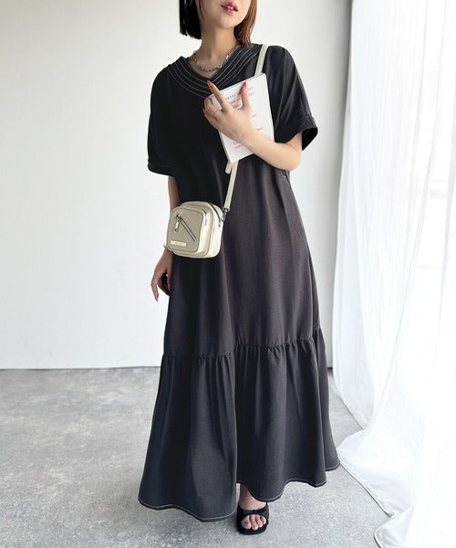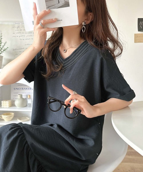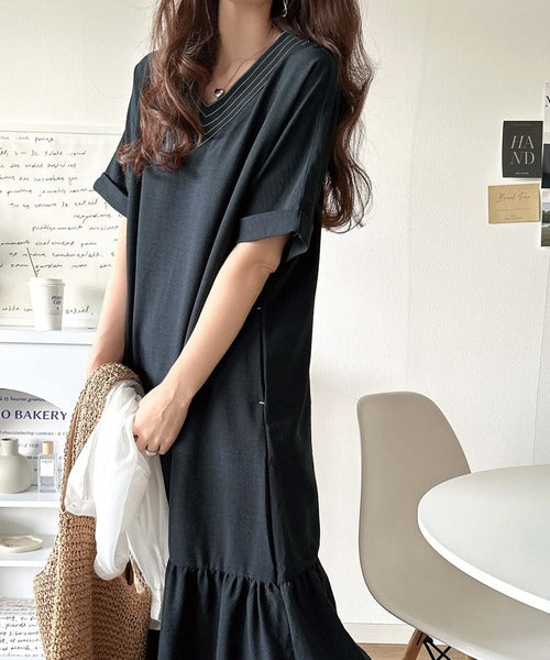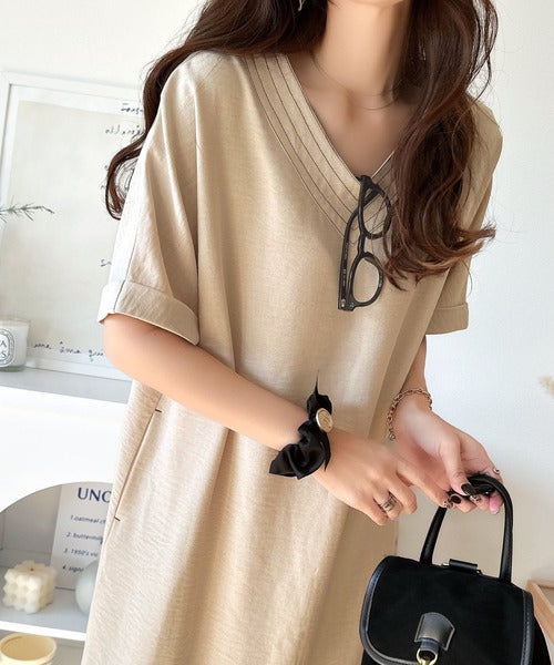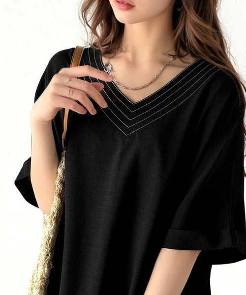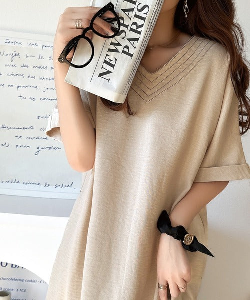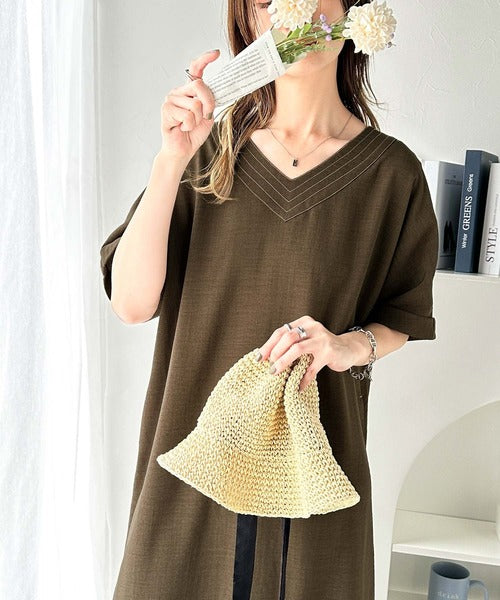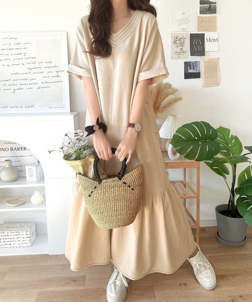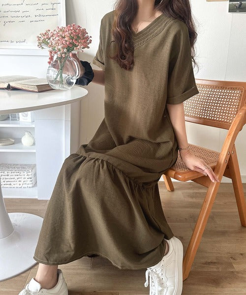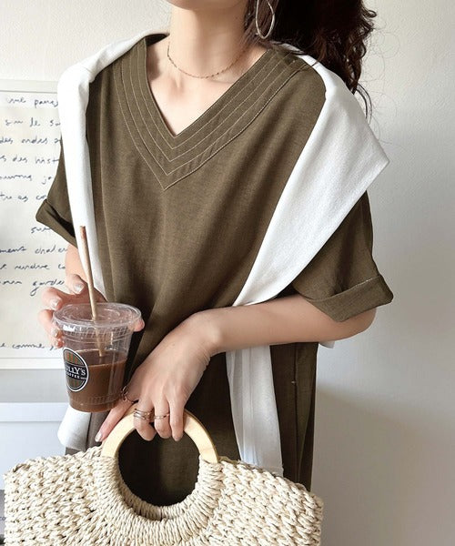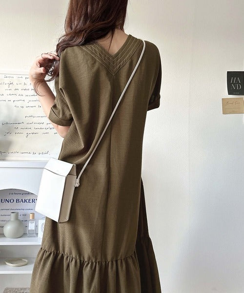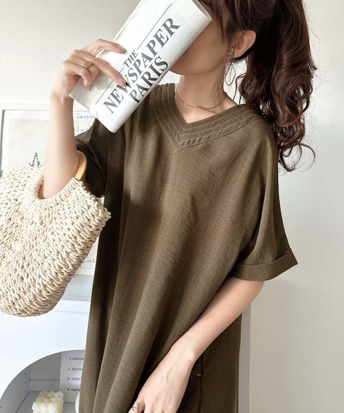 大人の抜け感。ステッチ使いVネックロングワンピース ce1260386