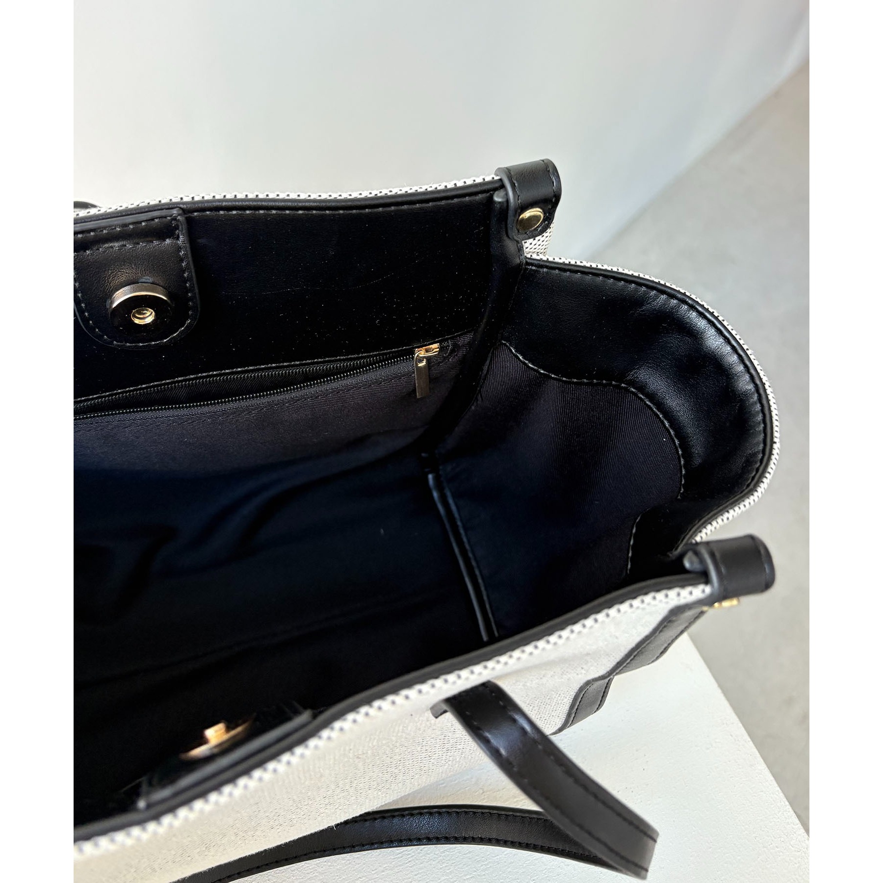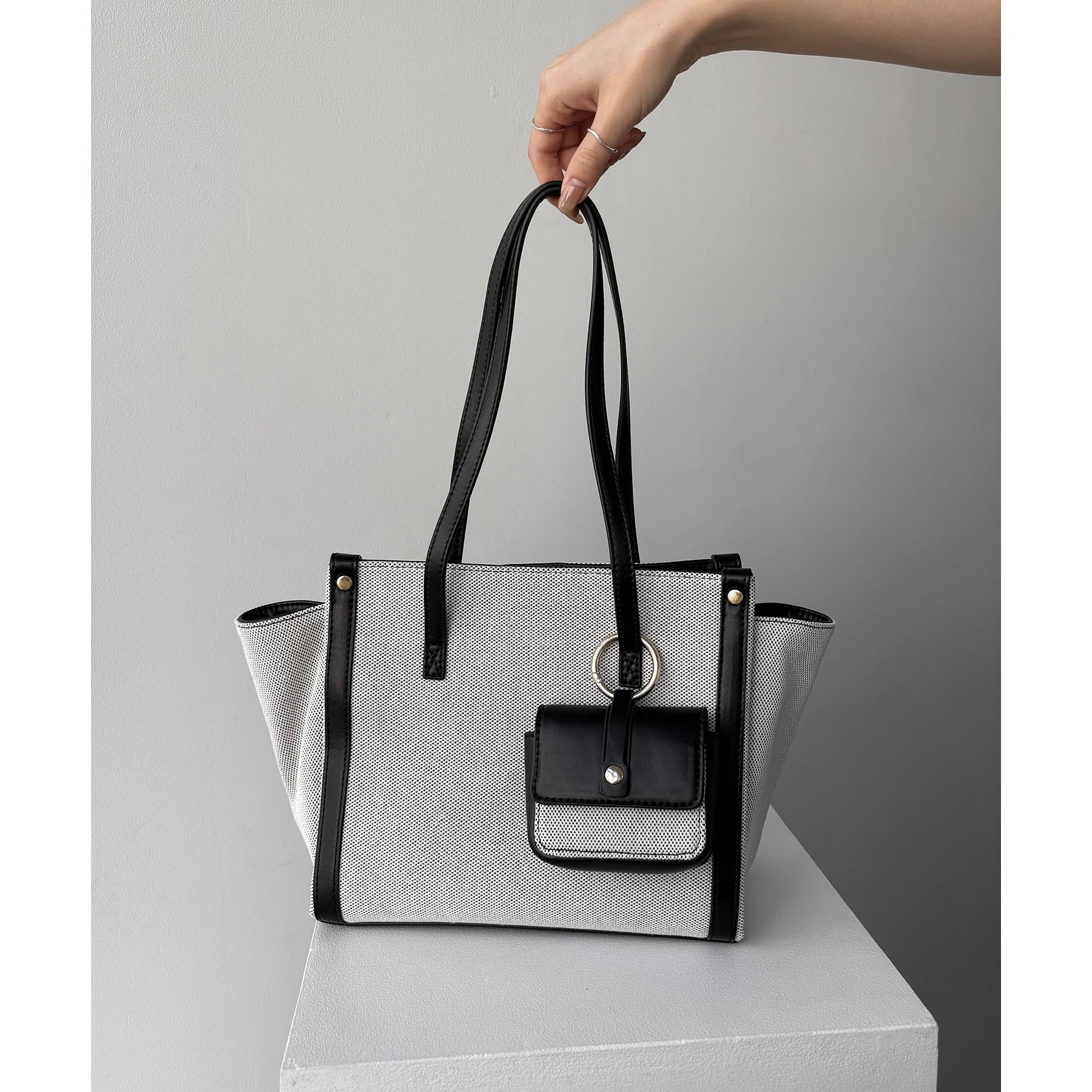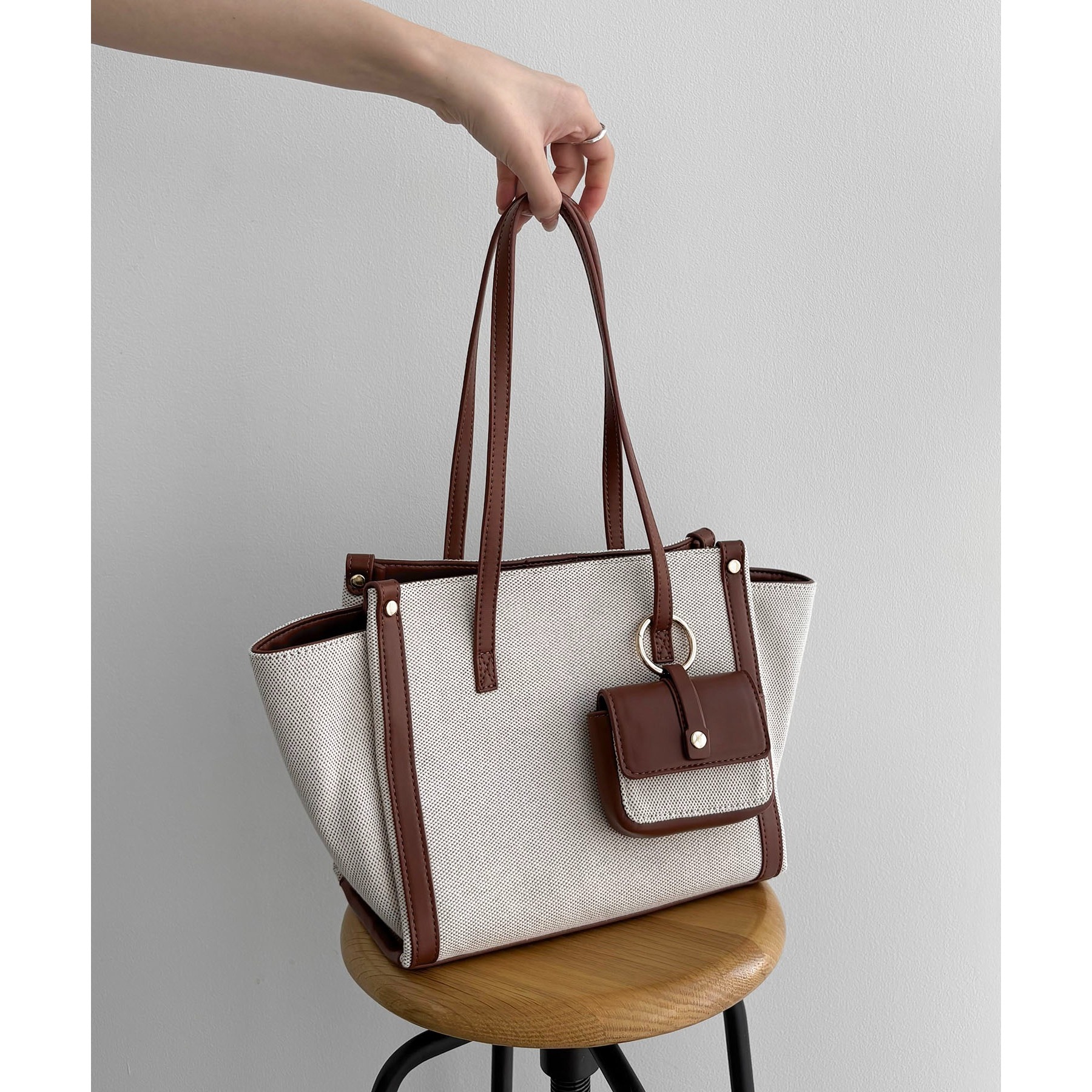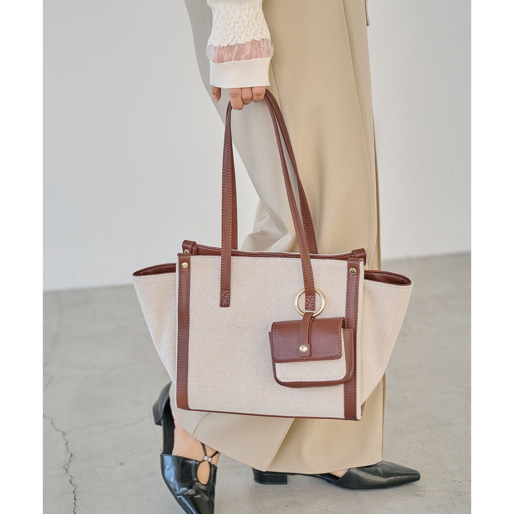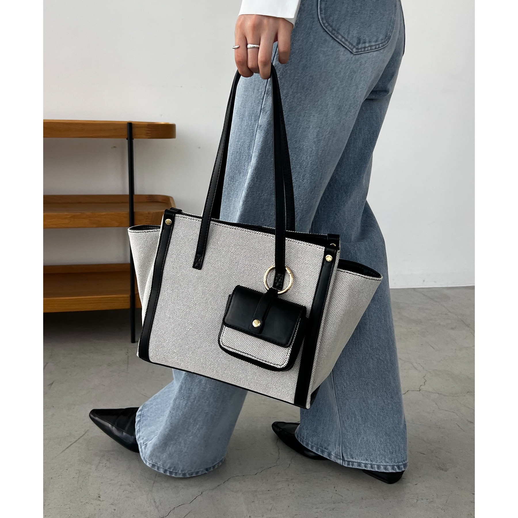 上品なシャンブレー生地に合皮のパイピングを施したきれいめトートバッグ