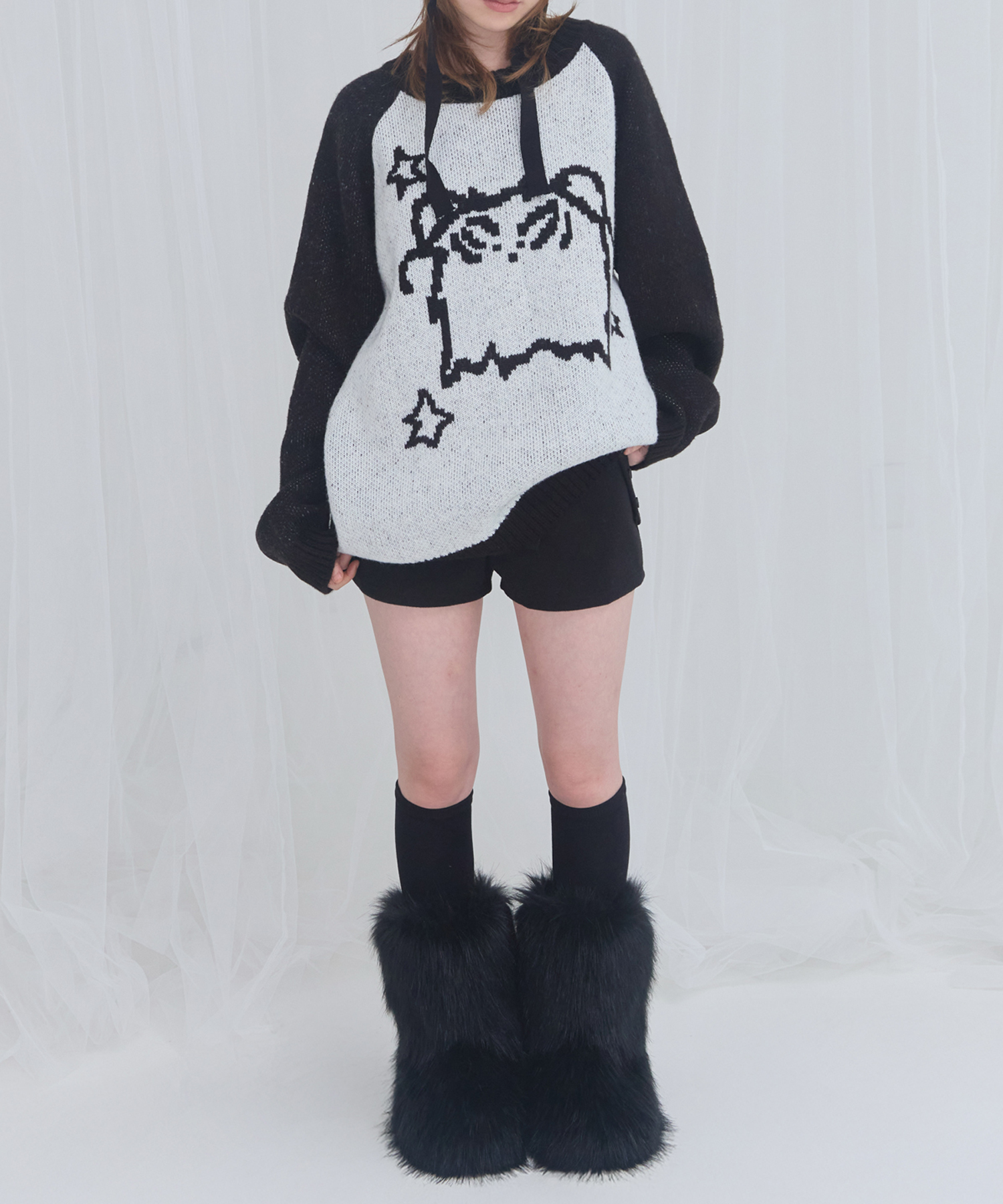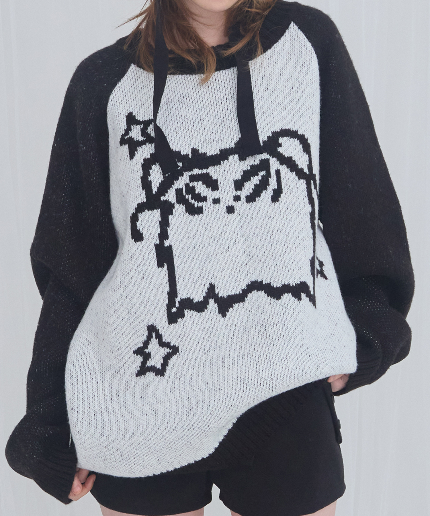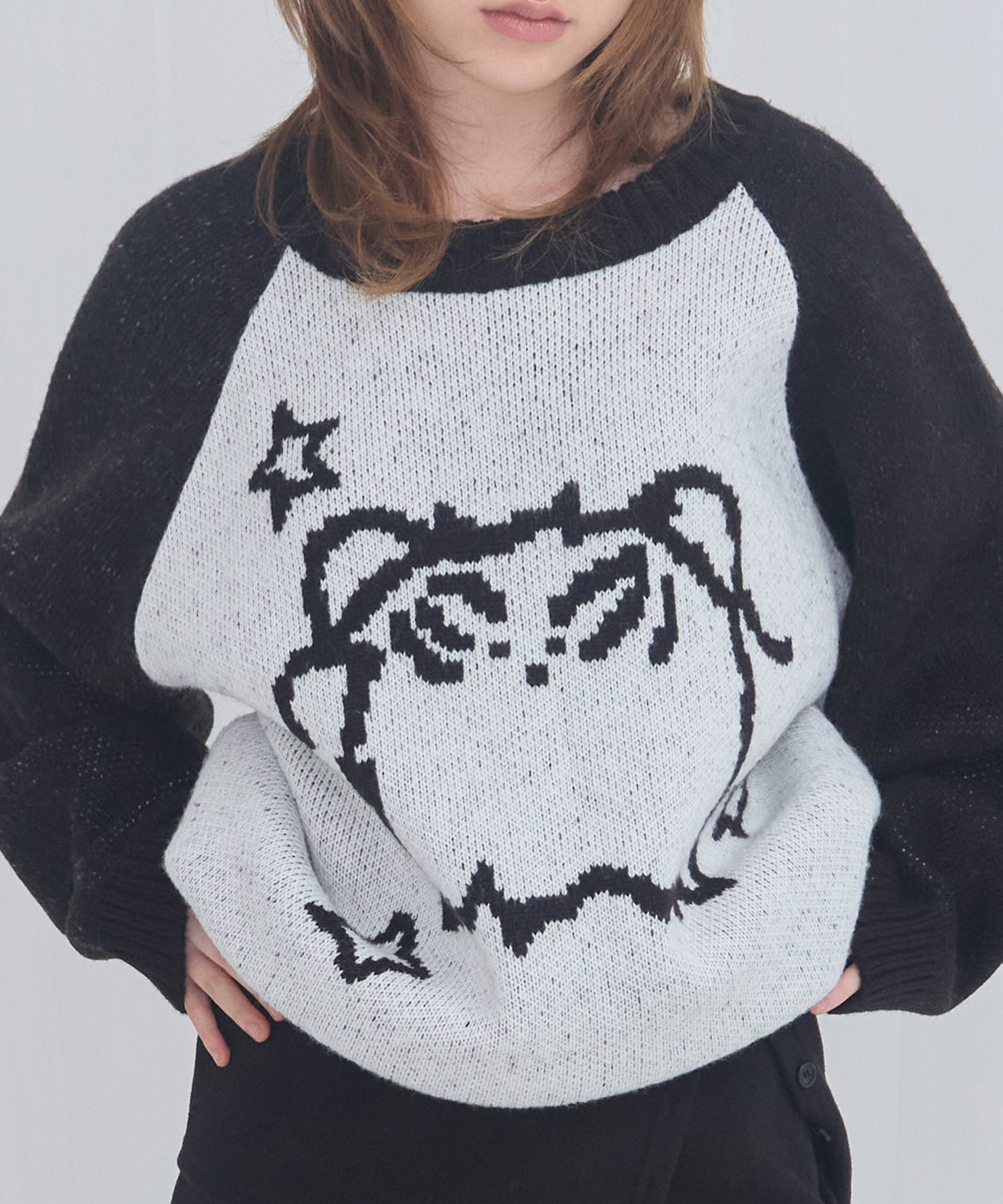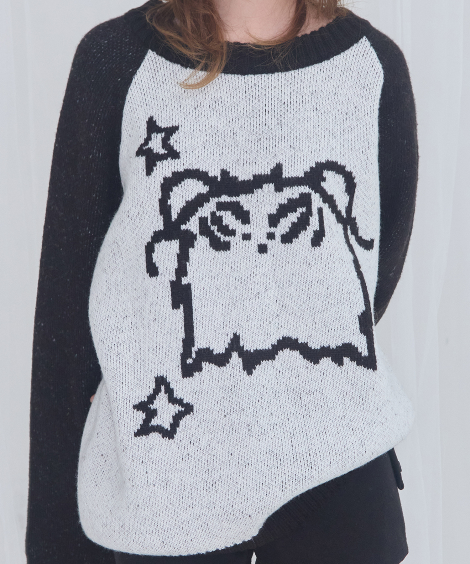 [FANCY X DUSTY] OVERFIT COLOR BLOCK PULLOVER KNIT (BLACK) F25NM1007