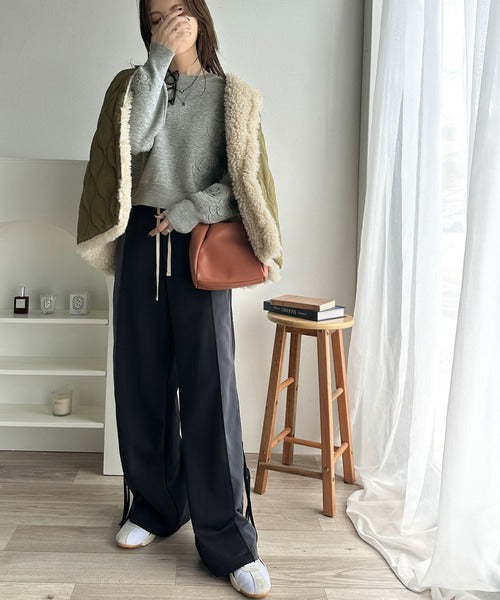 ゆったりとしたこのニットと合わせて、コーデにリッチさを演出。