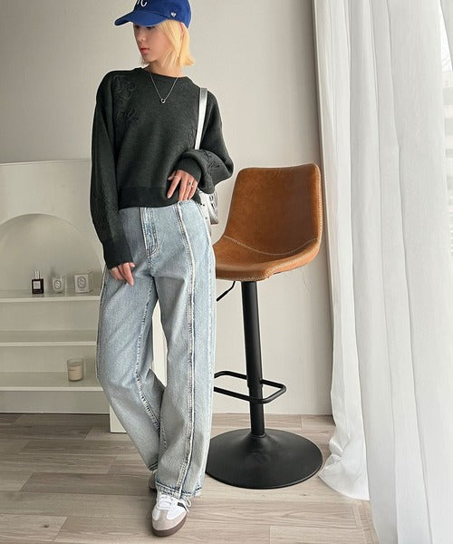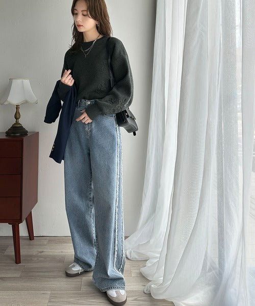 立体感があるジャカードニット素材で、程よくゆるっとしたシルエットに、