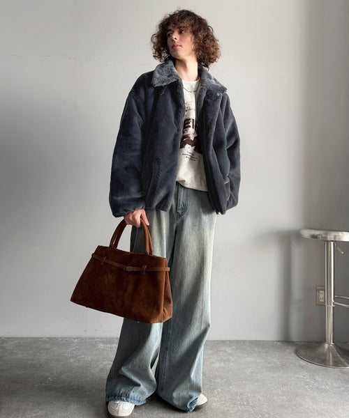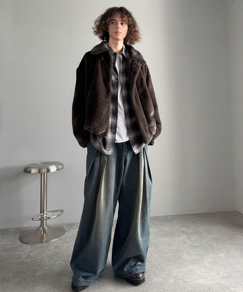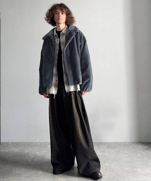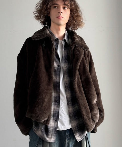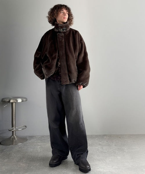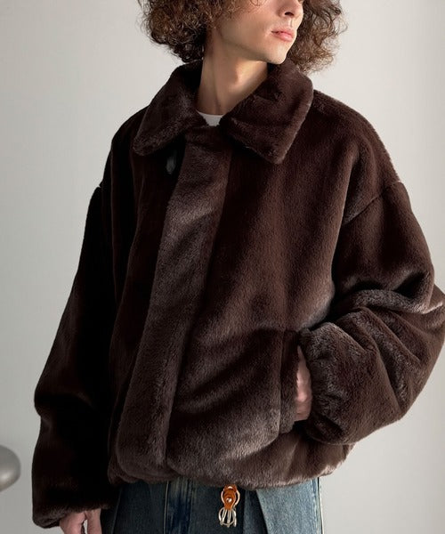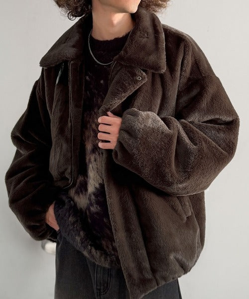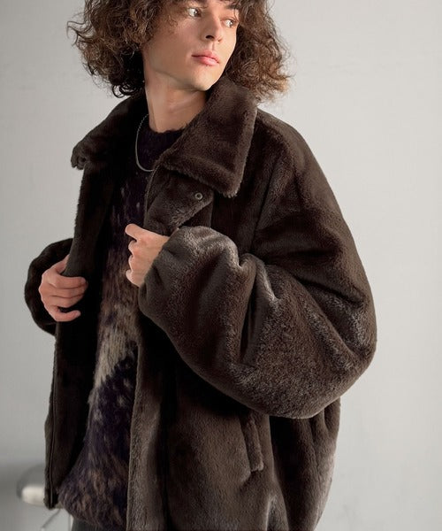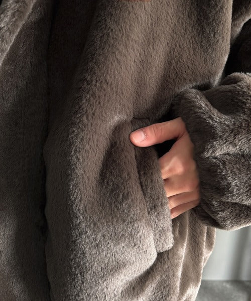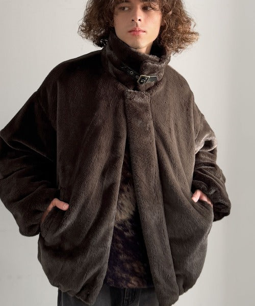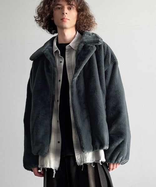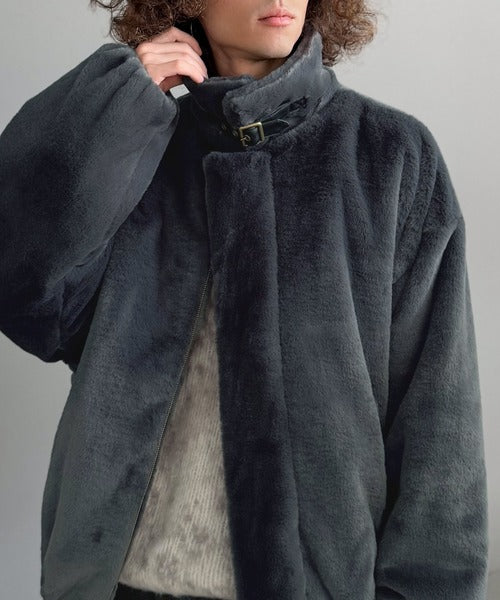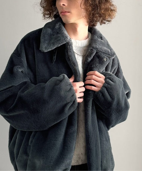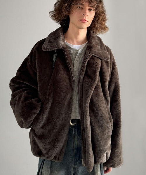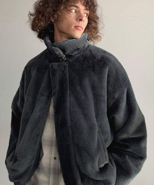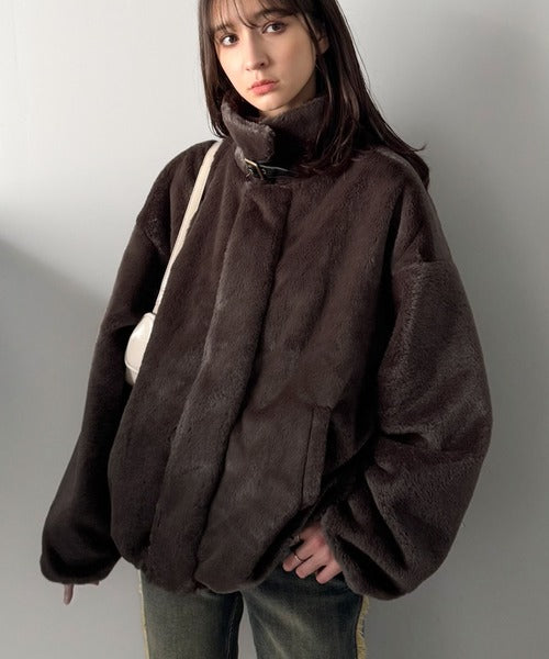 質感とシルエットで魅せる、ミニマルデザインのフェイクファーブルゾン。