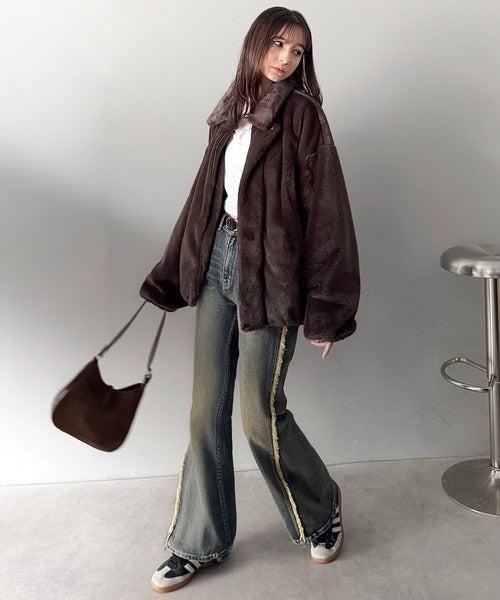 シーズンムードを引き上げる上質なフェイクファーを採用した、ショートブルゾン。