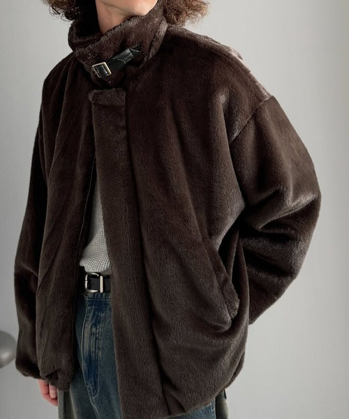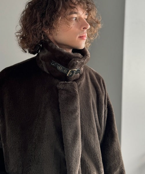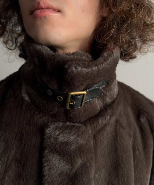 【Classical Origin】「3wayアレンジ可能。」ベルト襟フェイクファー素材ジャケット/Belted Collar Faux Fur Jacket co1150080