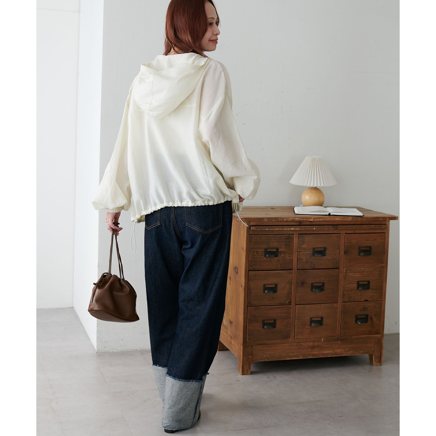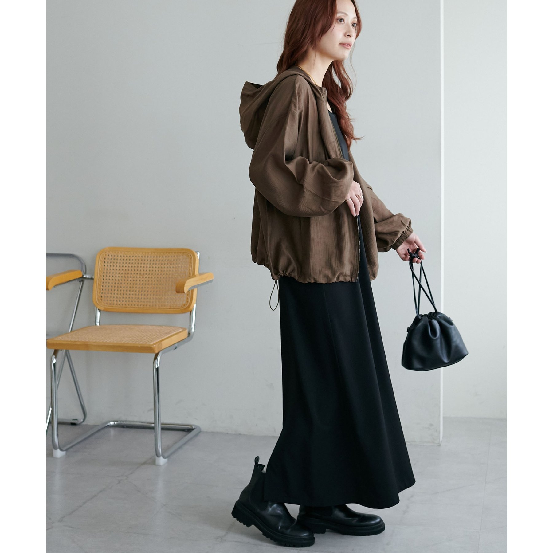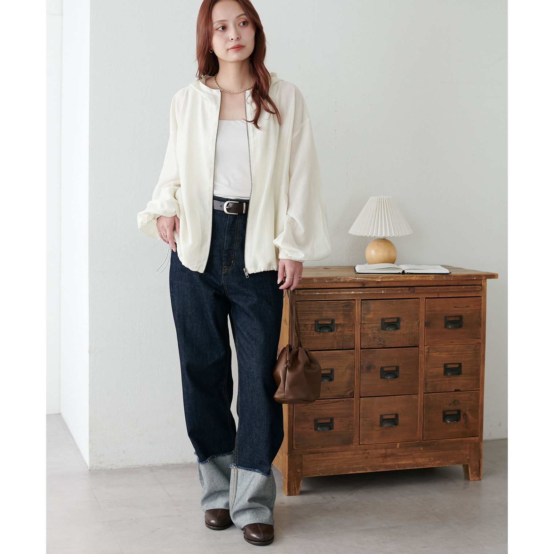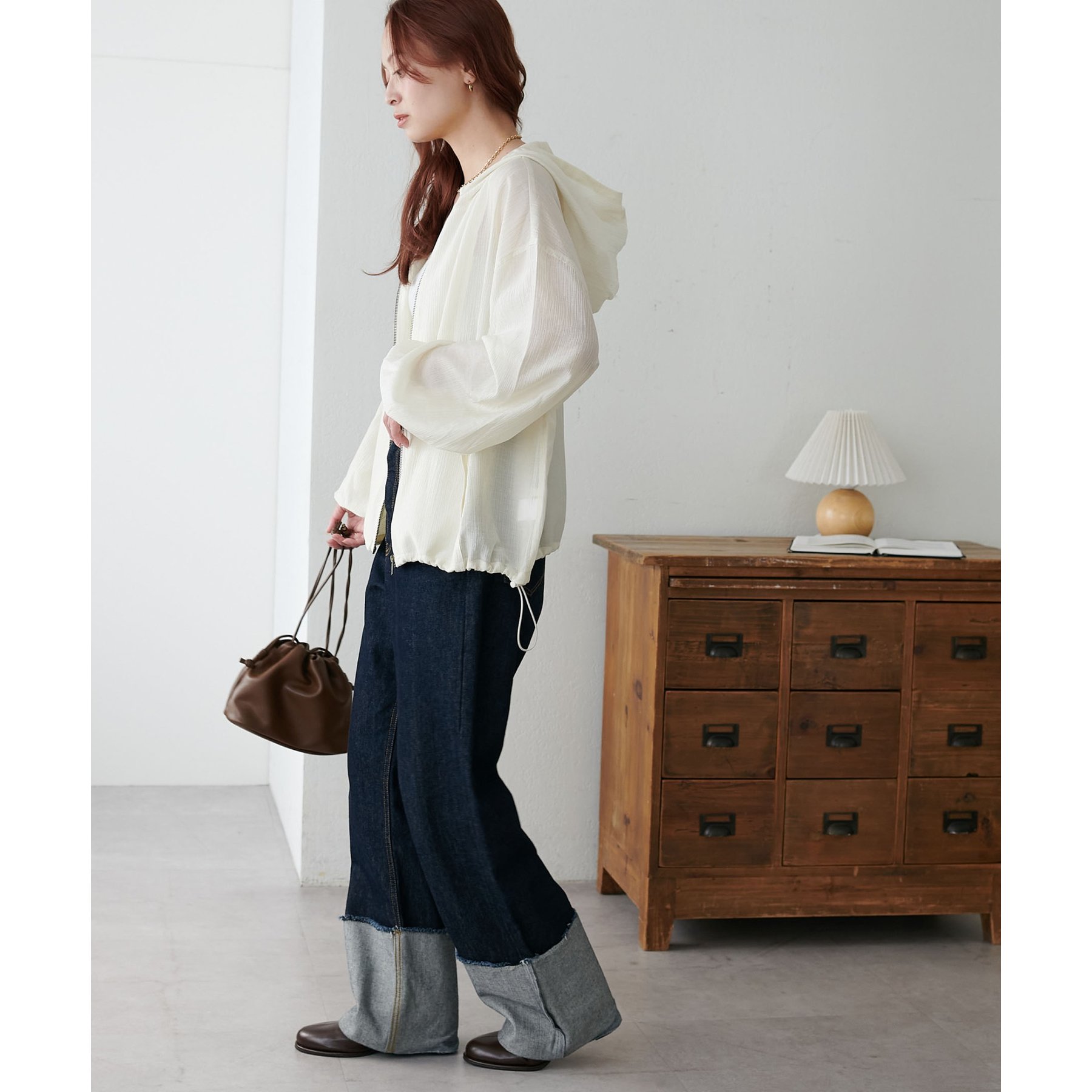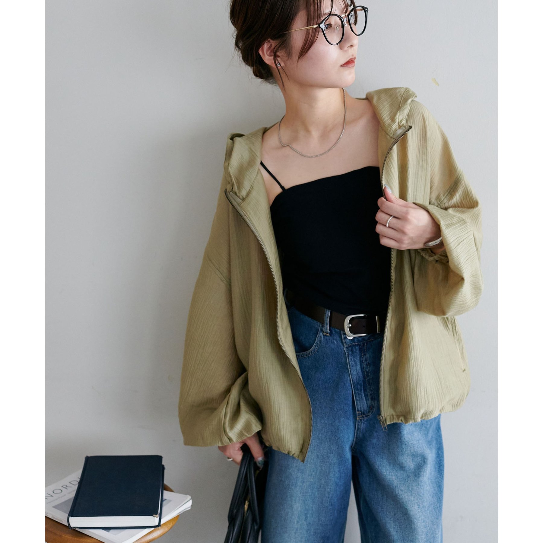 軽やかに羽織れてバランス良く決まる、シアー素材のフードブルゾン