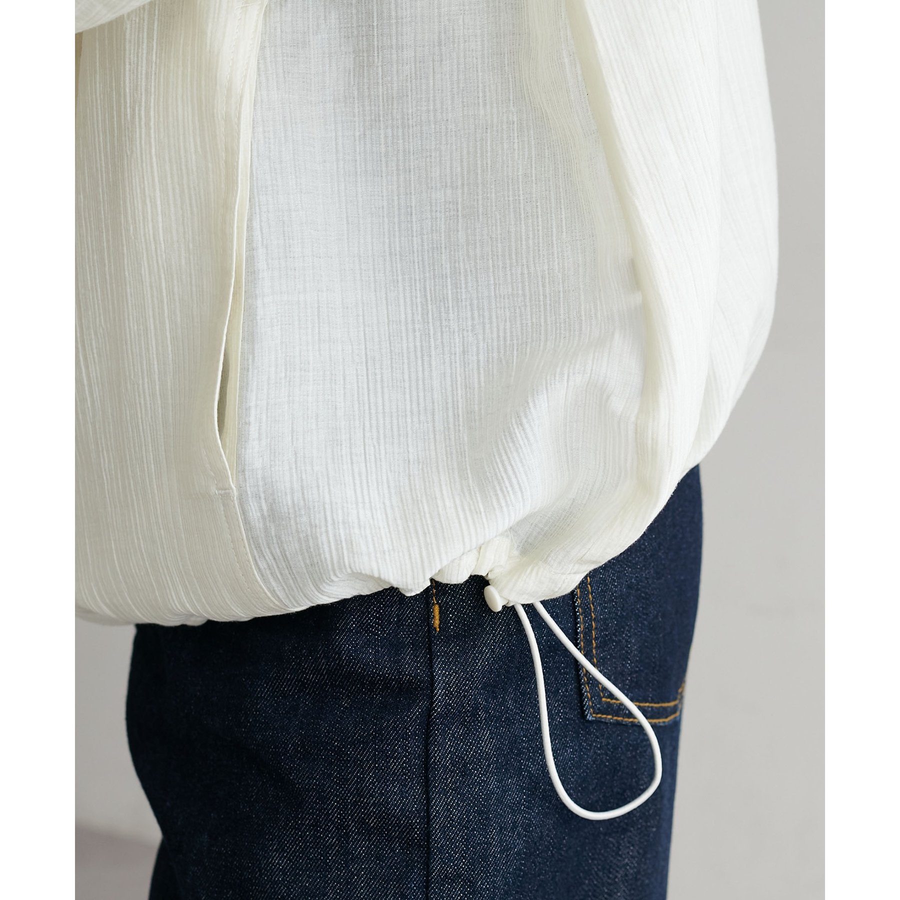 160cmスタッフ:ウエストのドロストを絞るとメリハリが出て、ゆるっとしたワイドパンツ合わせでもバランスが取りやすかったです◎