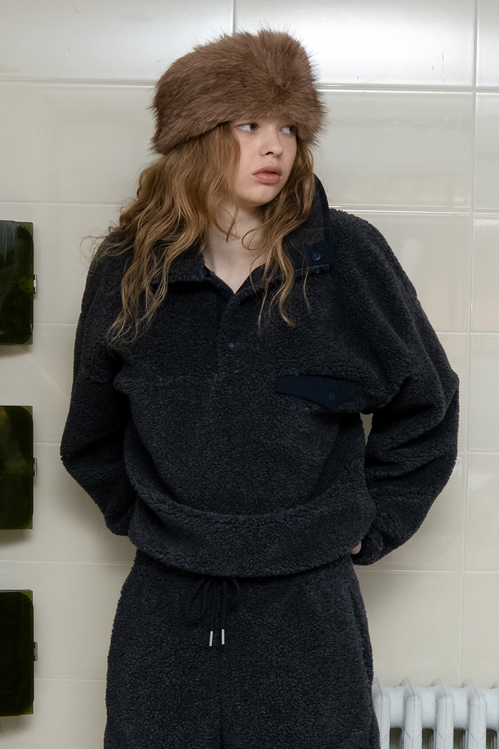 Teddy fleece anorak_charcoal