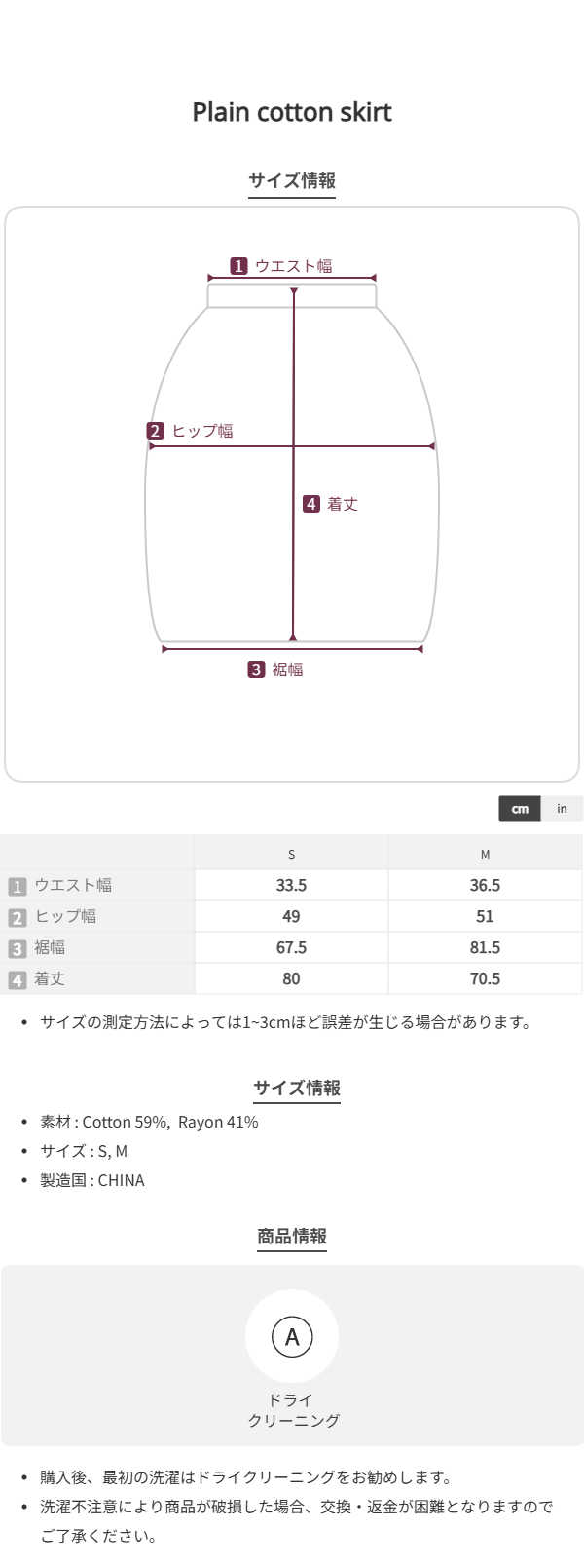 Plain cotton skirt_2size