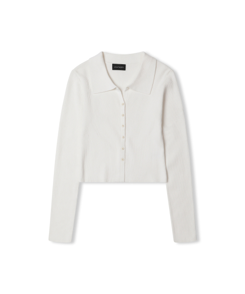 Slim Fit V Neck Collar Knit Cardigan [IVORY]
