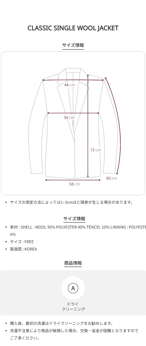 CLASSIC SINGLE WOOL JACKET (BROWN)