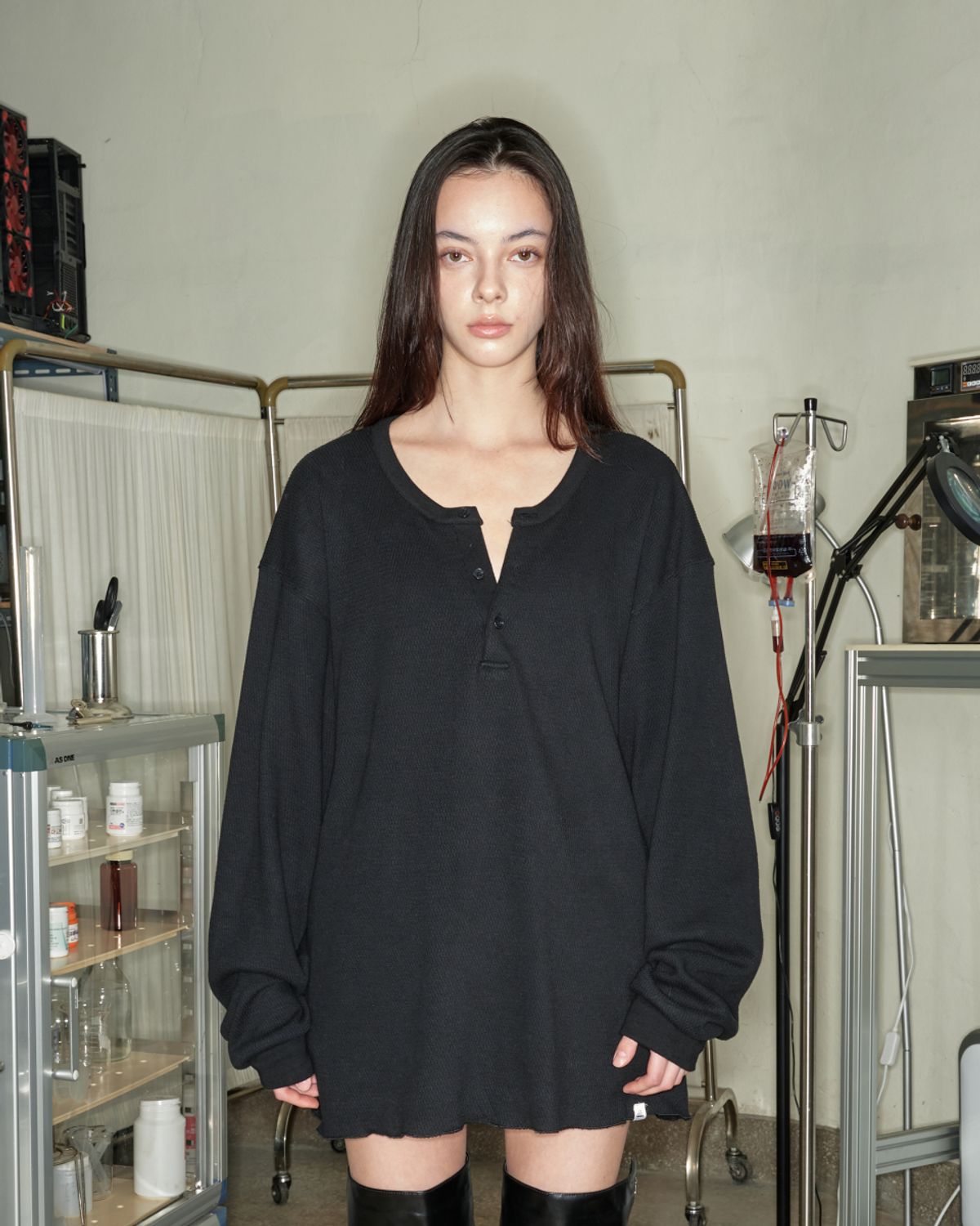 -ユニセックス ヘンリーネック