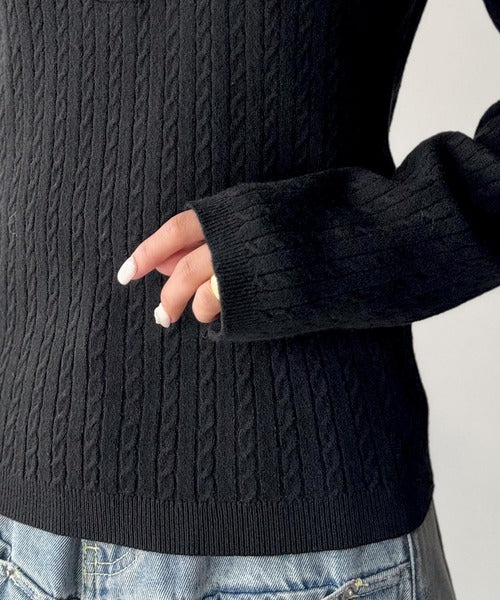 トレンドのミニケーブル編みが、シンプルながらもおしゃれな印象を与えます。