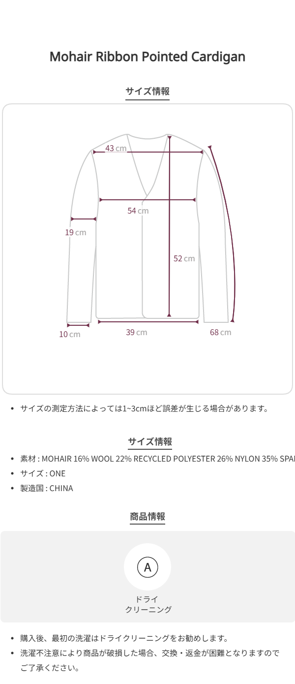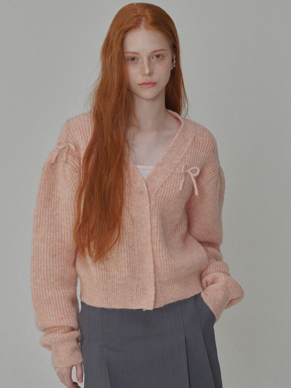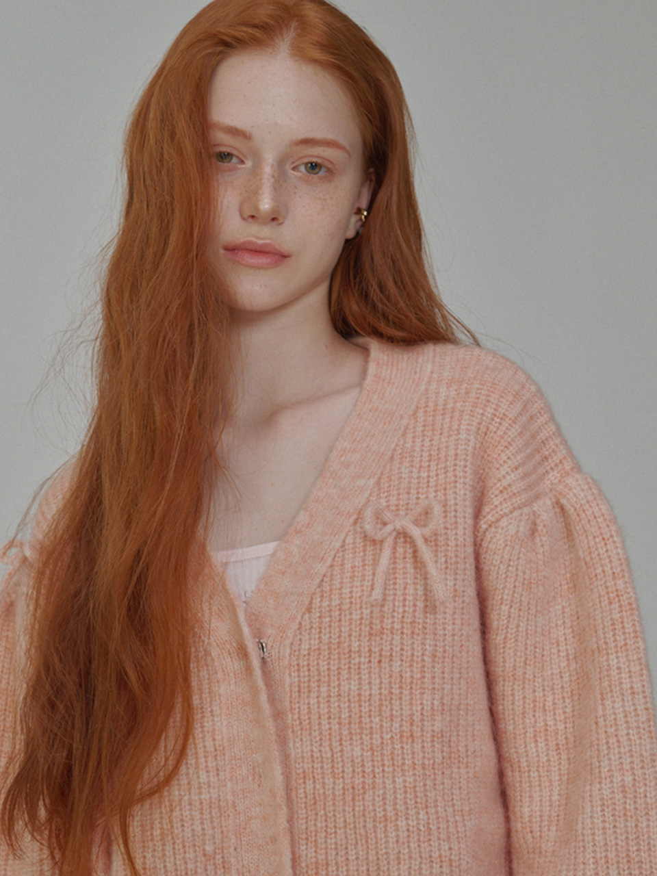 Mohair Ribbon Pointed Cardigan Pink