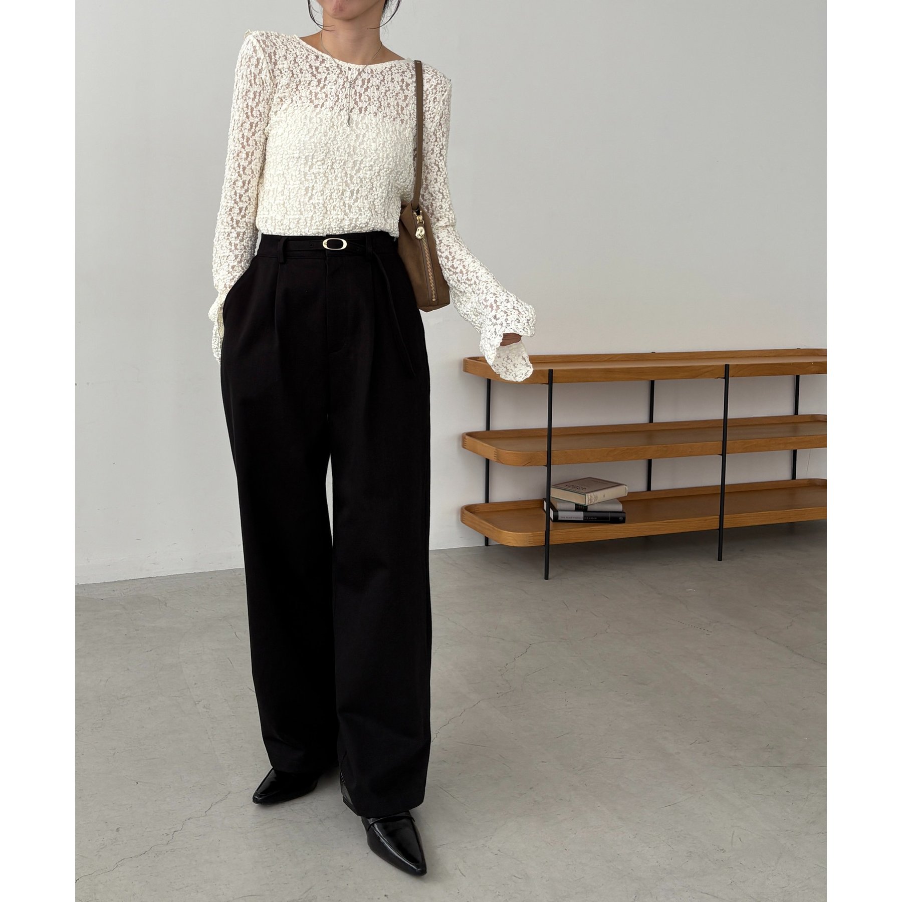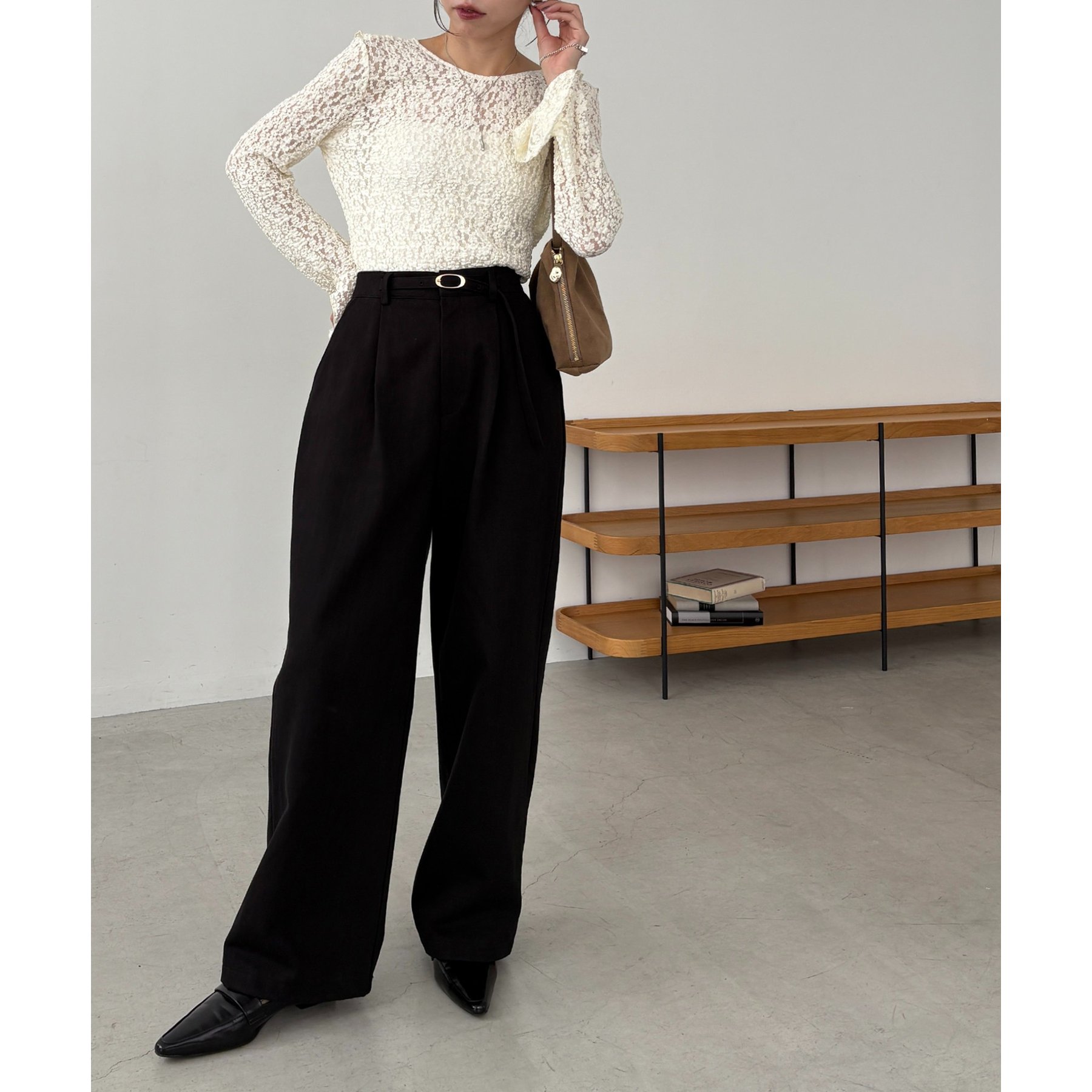 ・太すぎないワイドシルエットで程よい抜け感をプラス