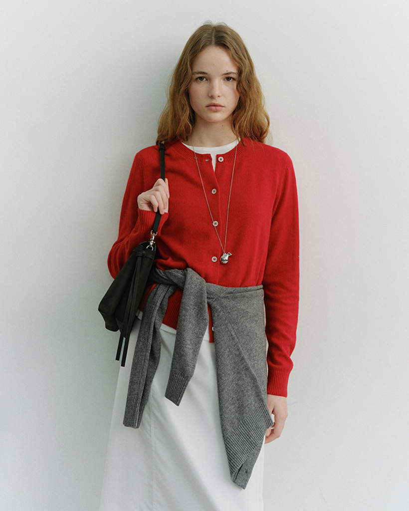 ESSENTIAL CREWNECK KNIT CARDIGAN TOMATO RED_UDSW6A209R2