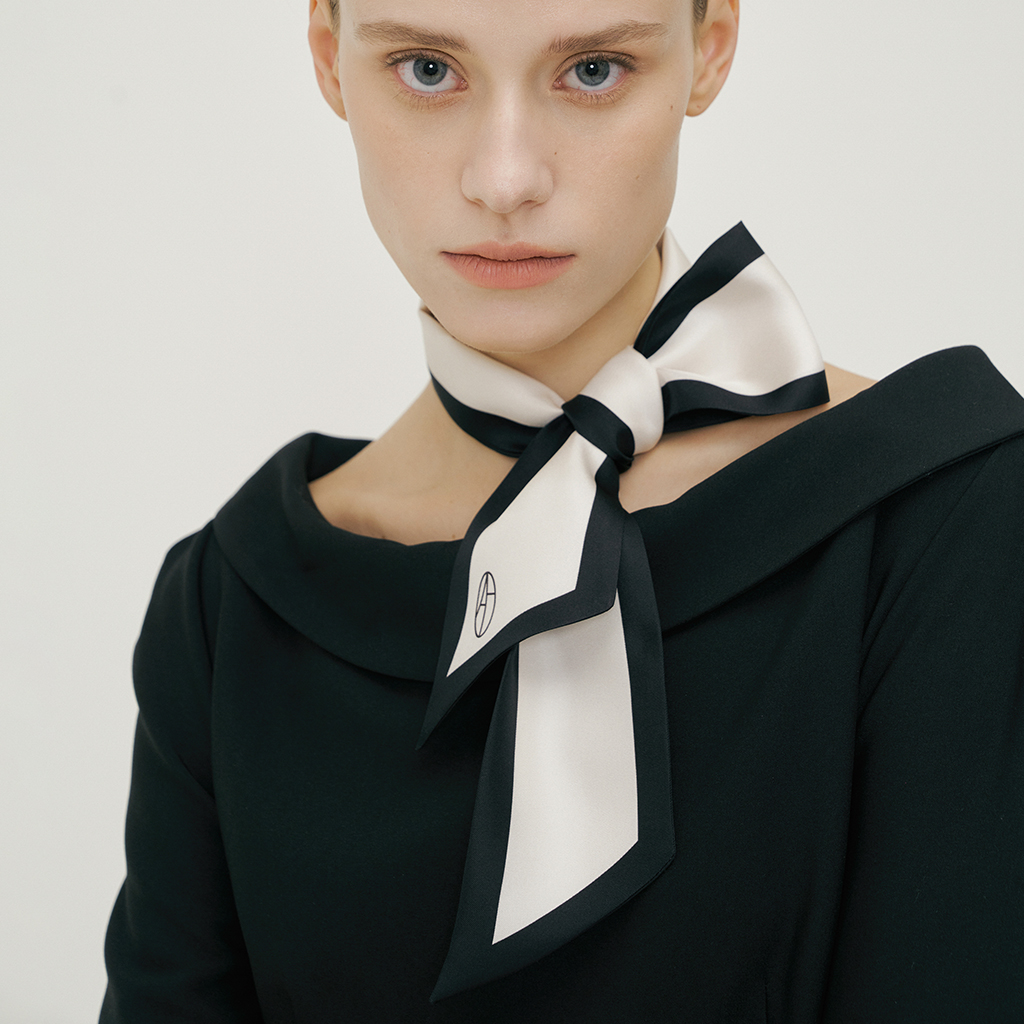 Long Twilly Silk Scarf - Black/Cream