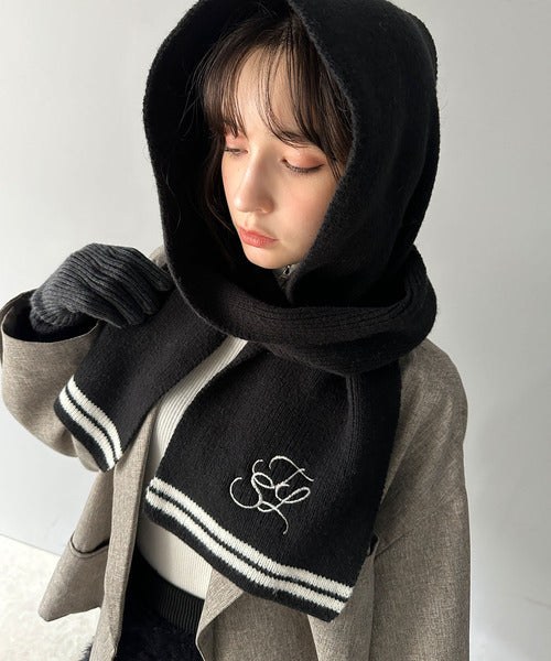 柔らか暖か。上品なロゴ刺繍入りラインニットマフラー(ストール) ce1010367