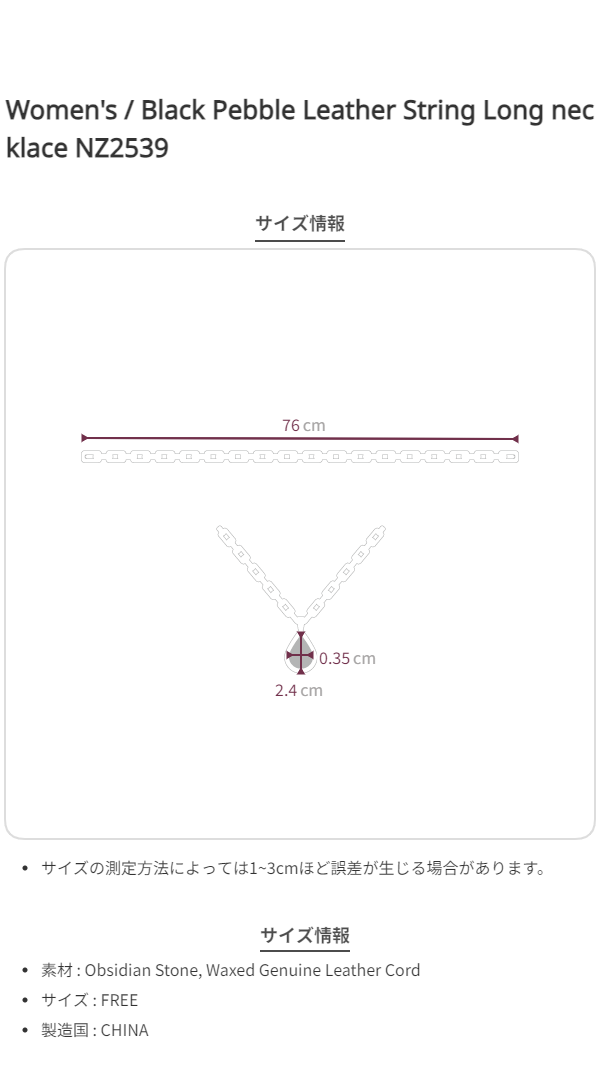 ブラック ペブル レザー ストリング ロングネックレス NZ2539