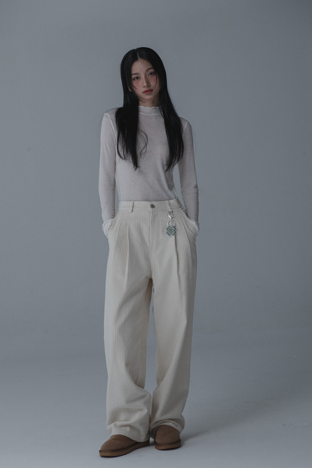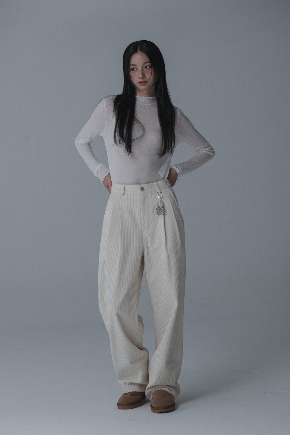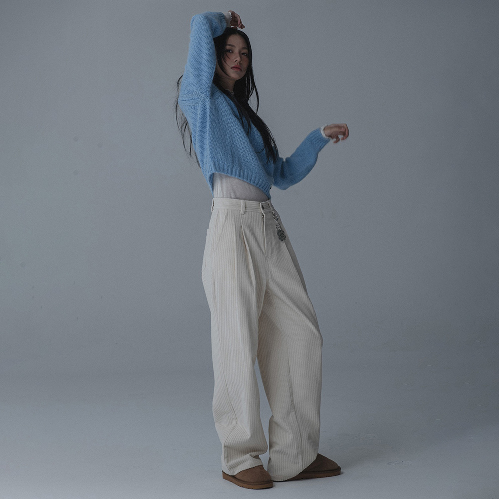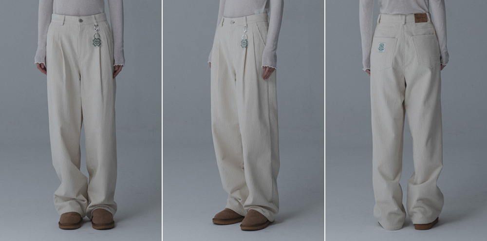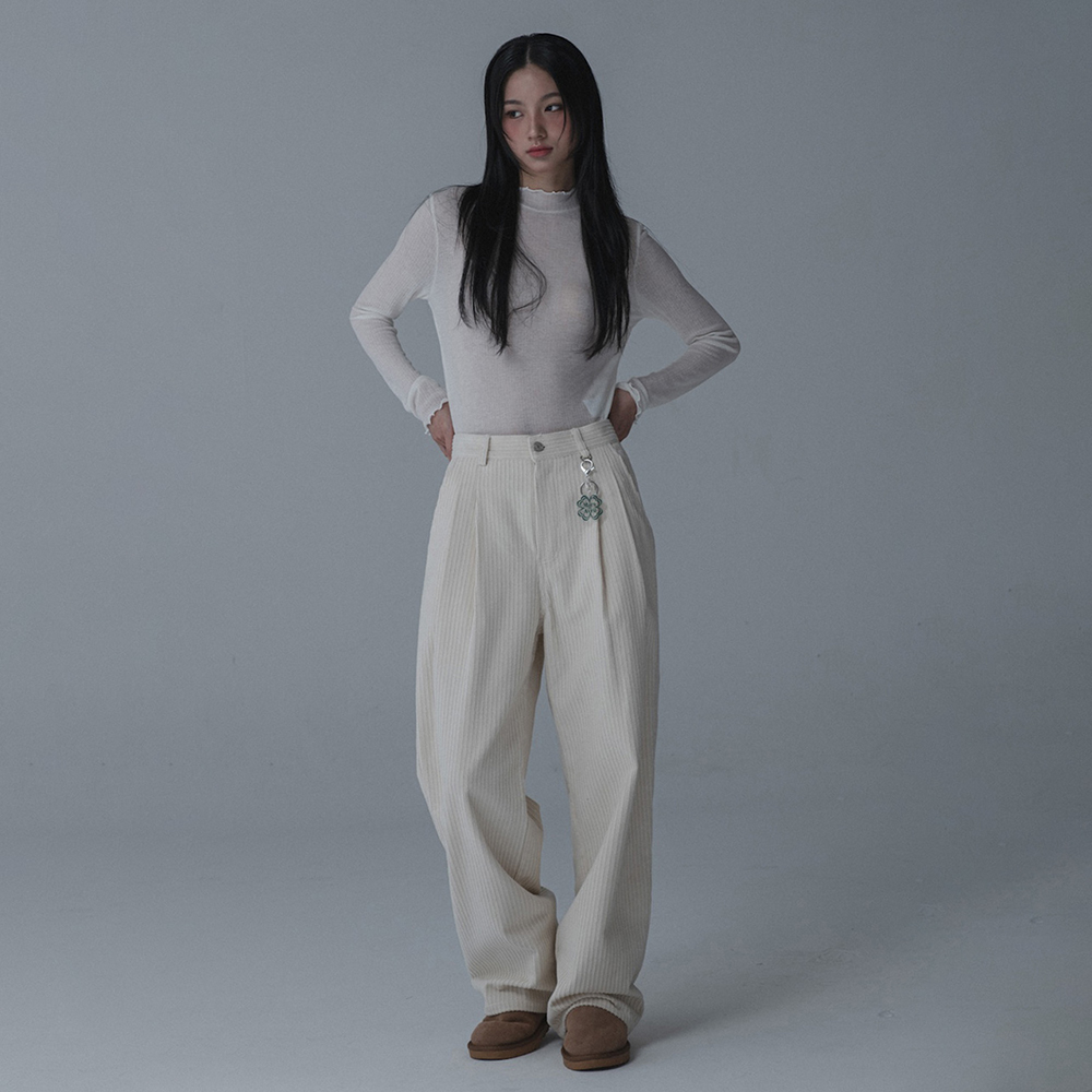 CORDUROY TUCK WIDE PANTS_CREAM