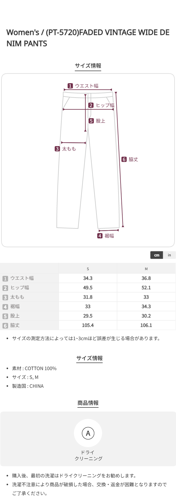 (PT-5720)FADED VINTAGE WIDE DENIM PANTS
