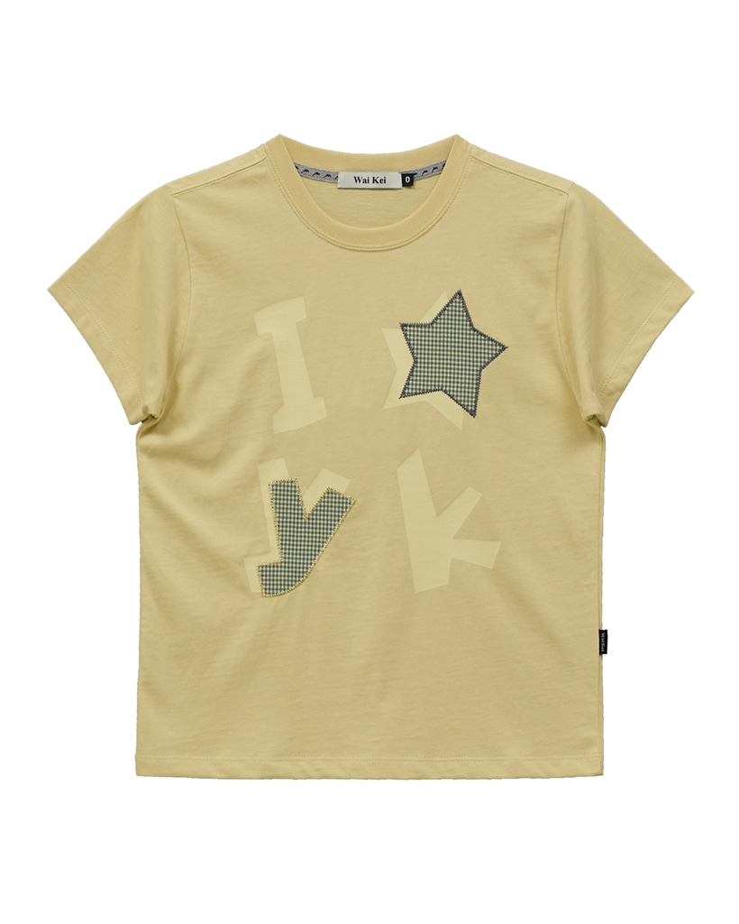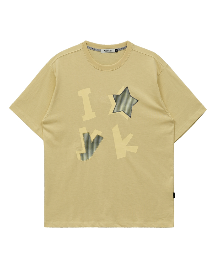 YK Check Applique Half Sleeve T-shirt LIGHT YELLOW