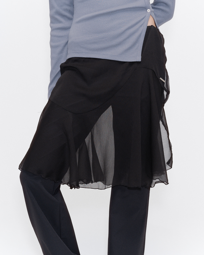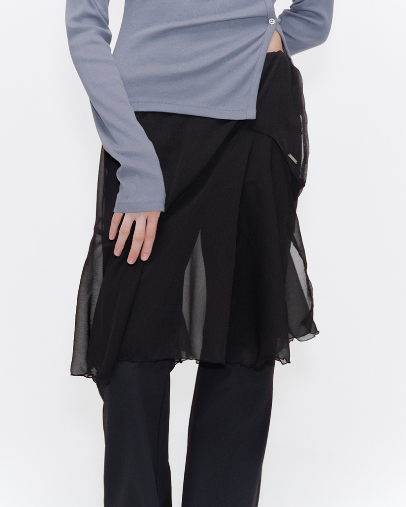 Sheer layered wrap skirt BLACK
