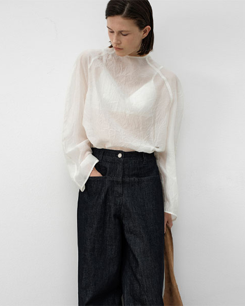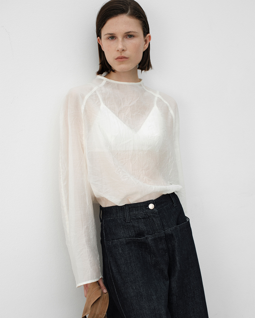 ほのかに透ける薄くシアーな素材が軽やかな着心地を提供し、