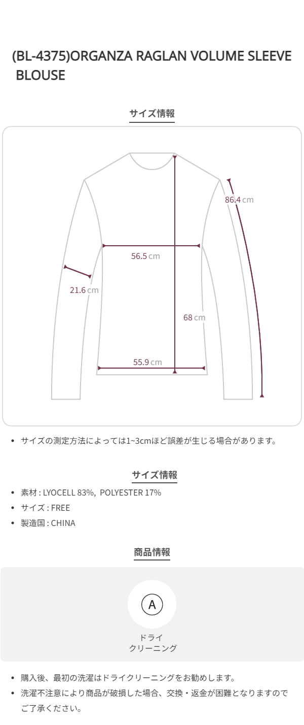 (BL-4375)ORGANZA RAGLAN VOLUME SLEEVE BLOUSE