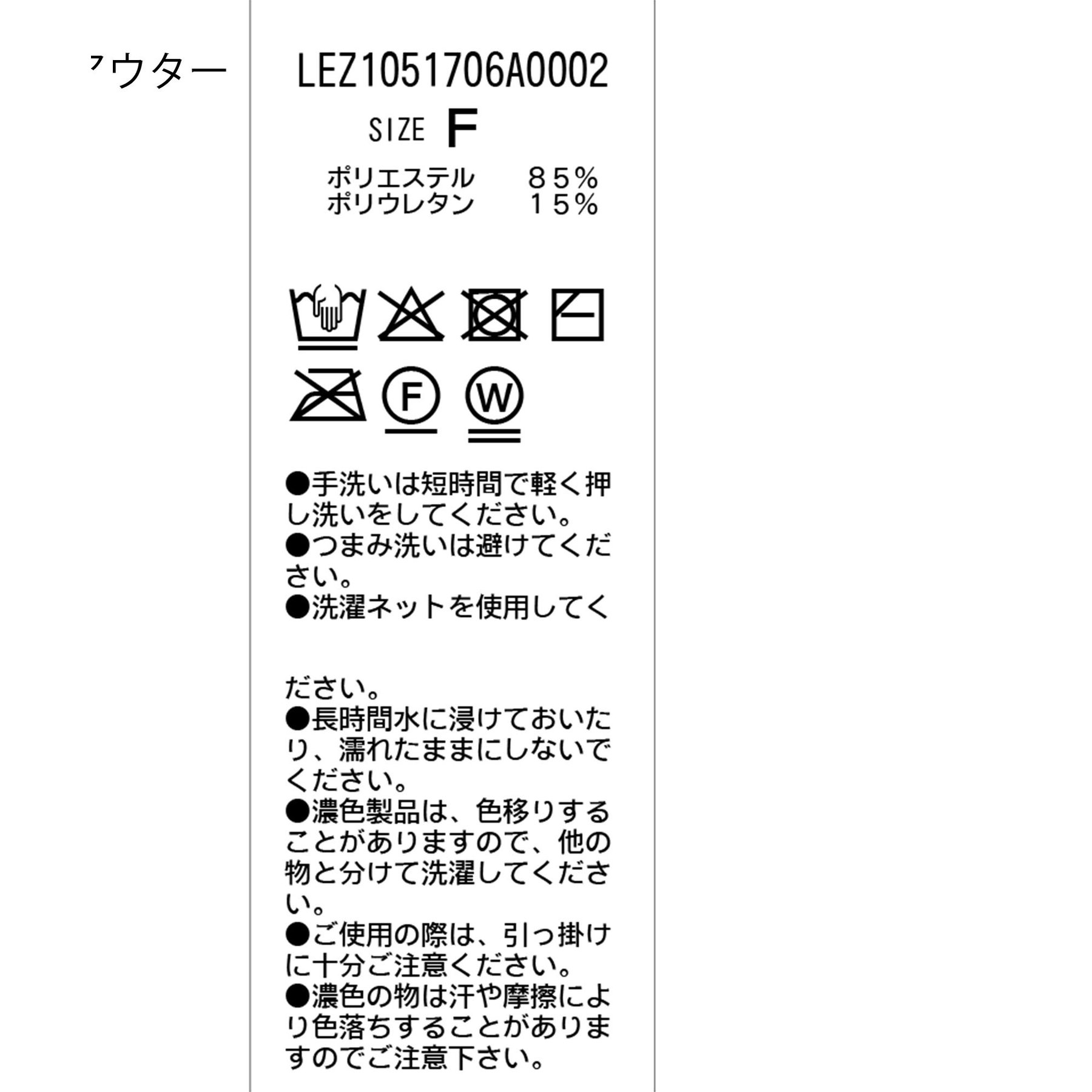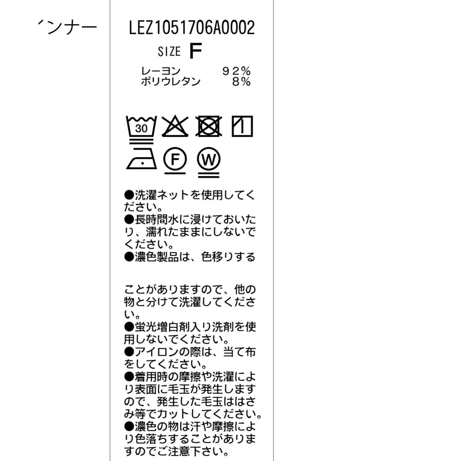 インナー:液温は30℃を限度とし、洗濯機で非常に弱い洗濯ができる