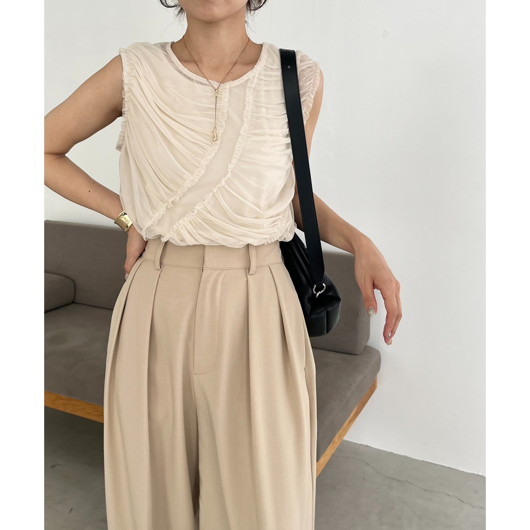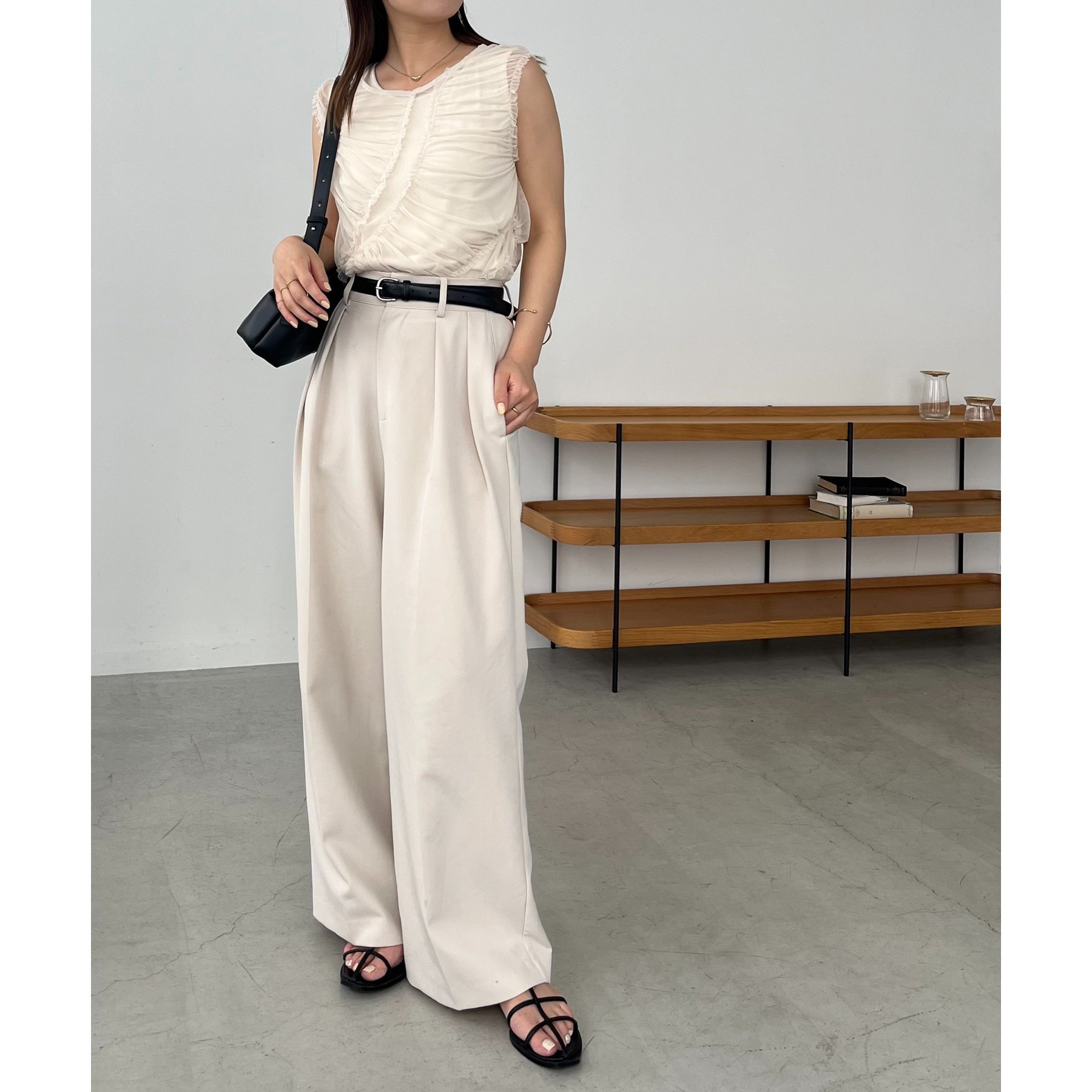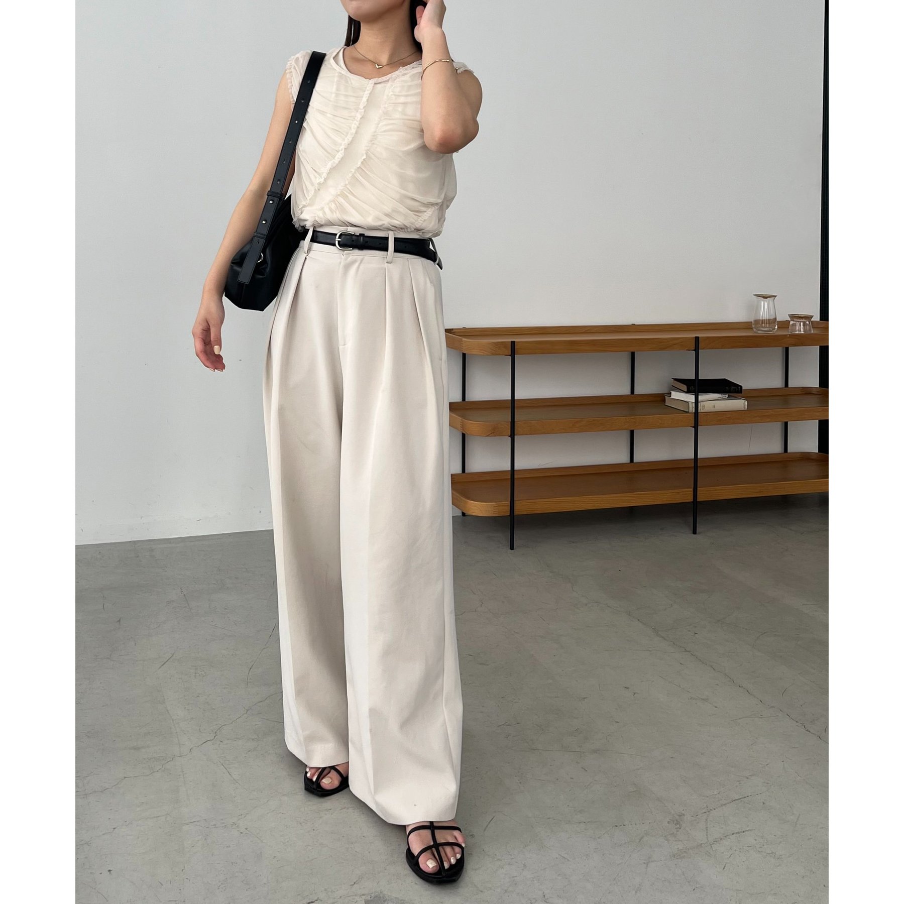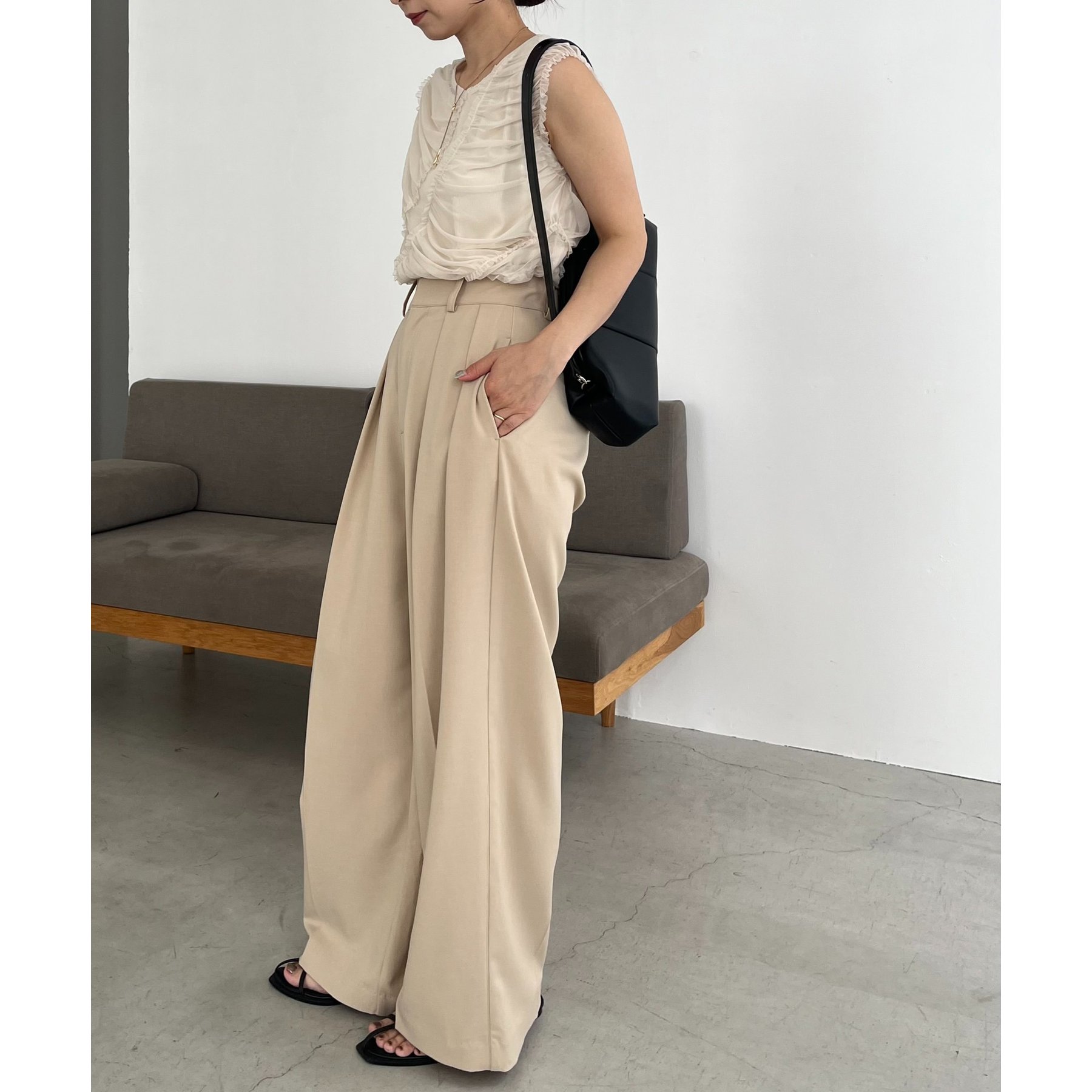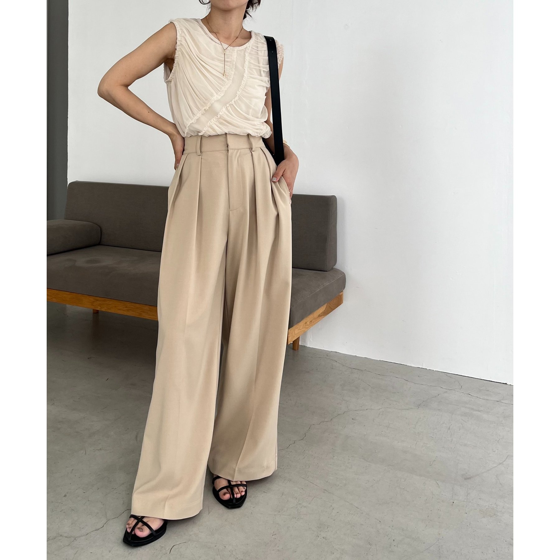 【ベージュ着用アイテム①②】2タックワイドパンツ