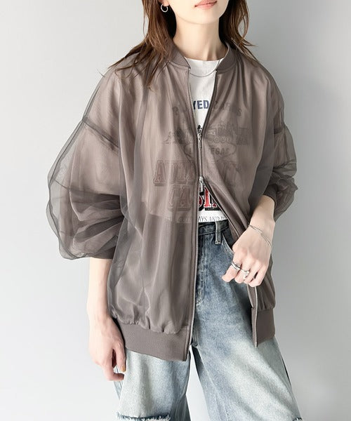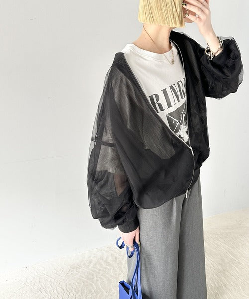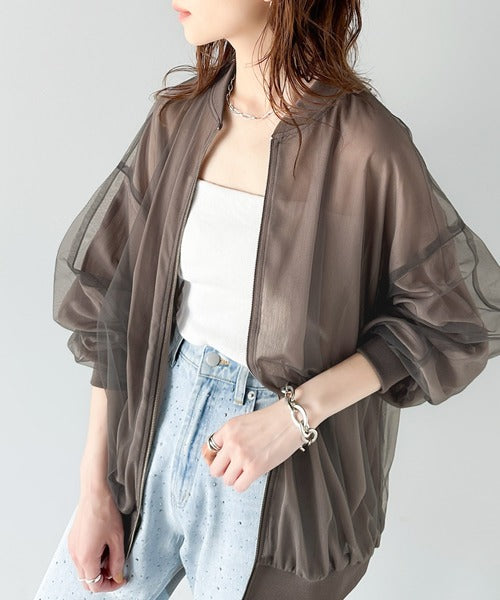 今っぽいこなれ感を叶える。チュール×シフォンレイヤードシアーブルゾン ce1010292
