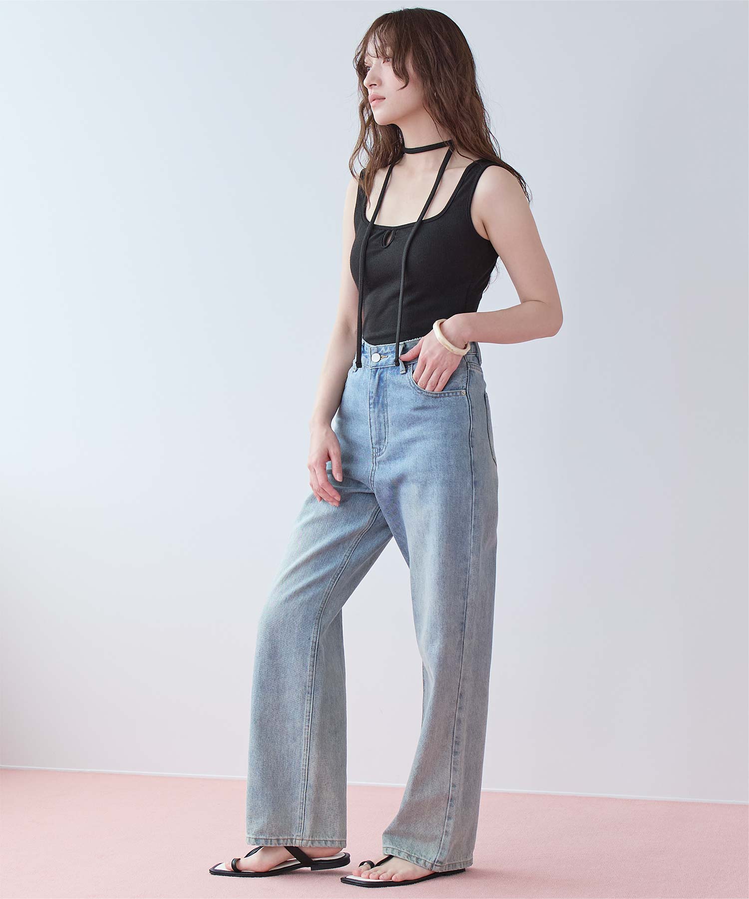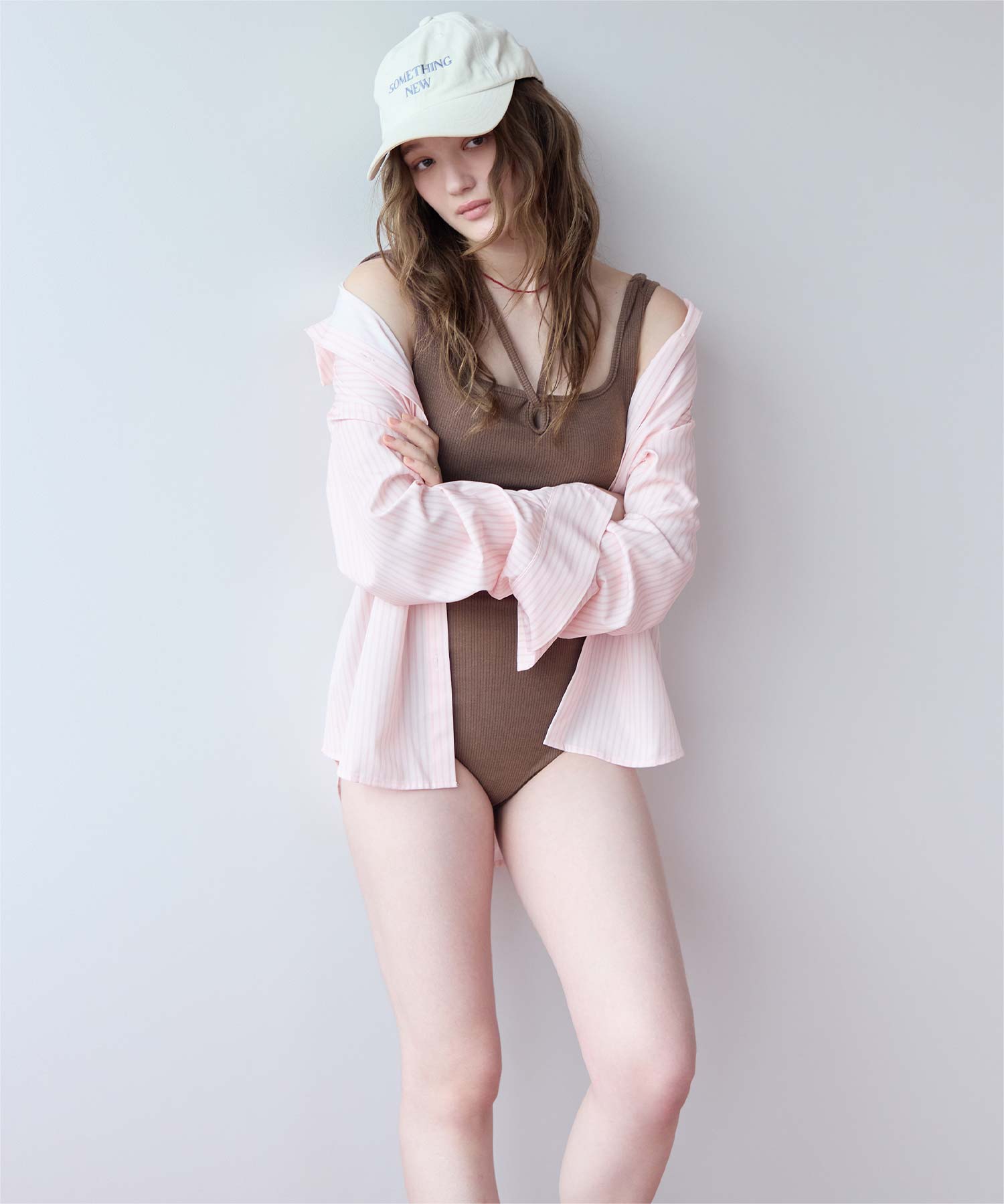 ・程よくフィットするリブ素材がボディラインをすっきり見せてくれます。