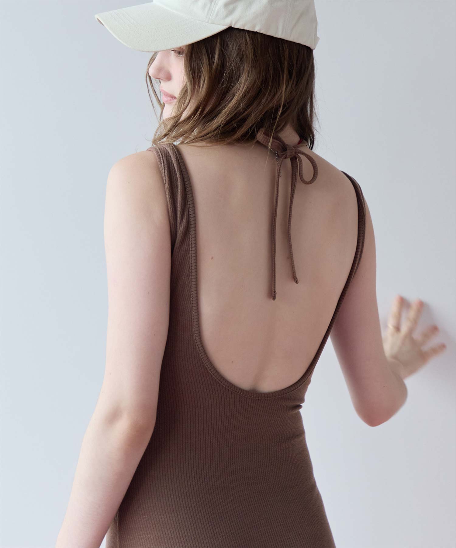 ・背中を大胆に見せるバックオープン仕様で、後ろ姿まで抜かりない印象に。