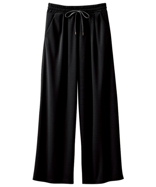 多機能付の軽やかなカットジョーゼット素材で、夏でも涼やかなワイドパンツ。