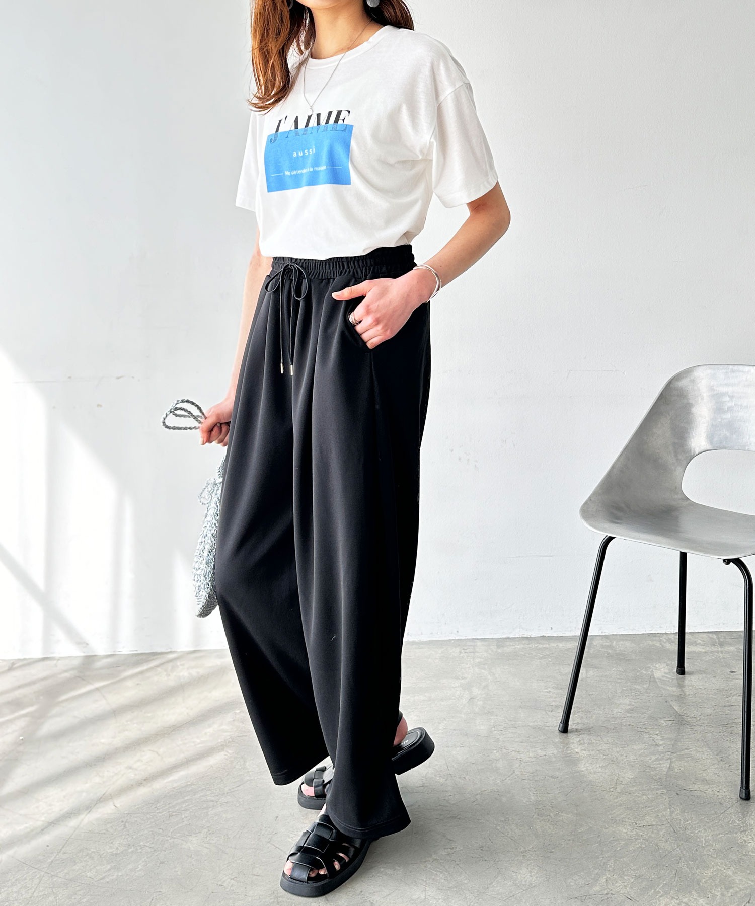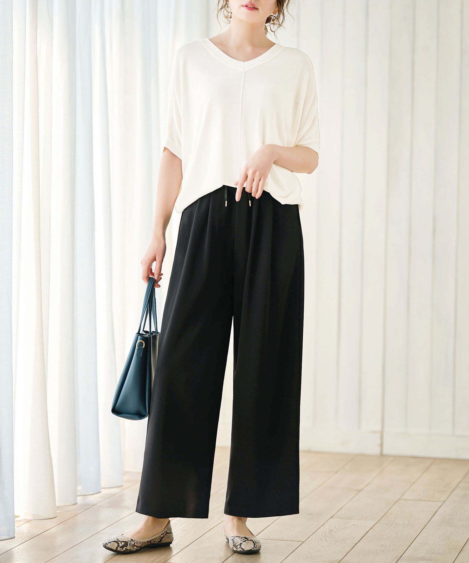 すっきりとしたワイドシルエットだから、