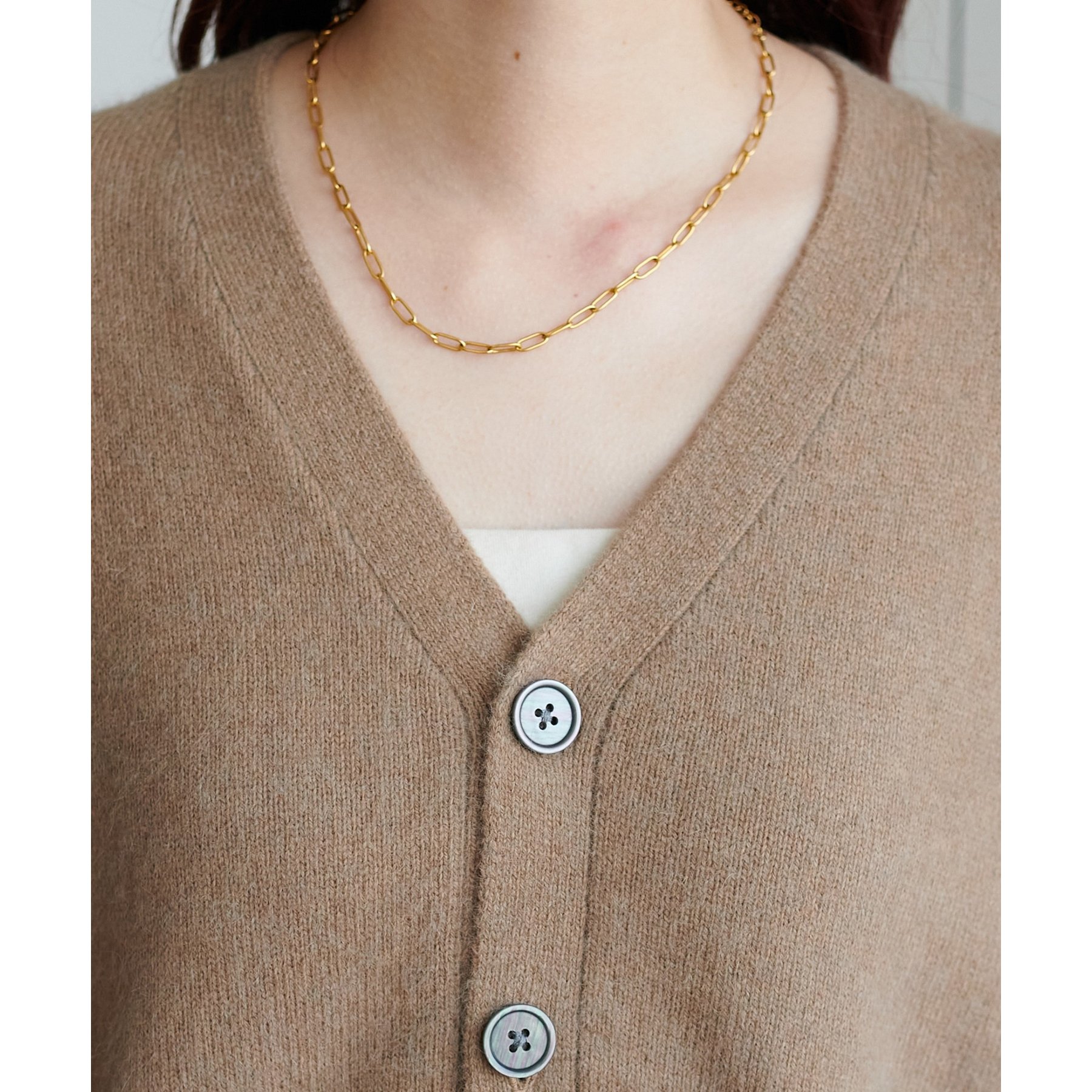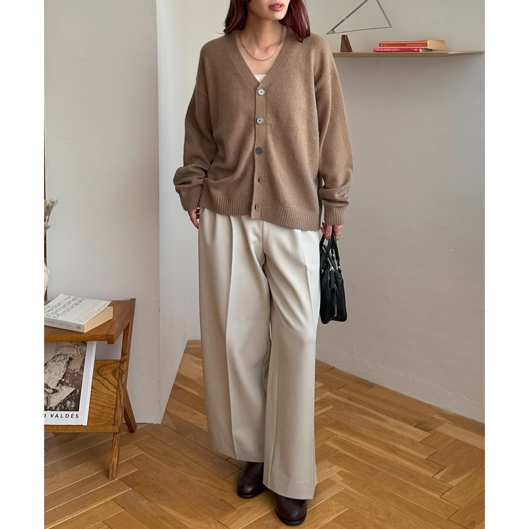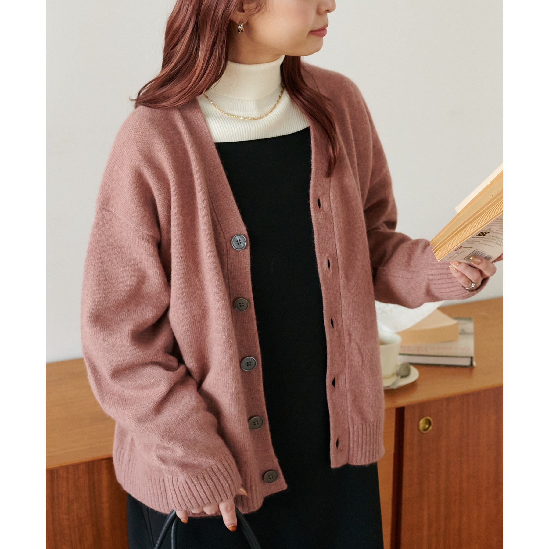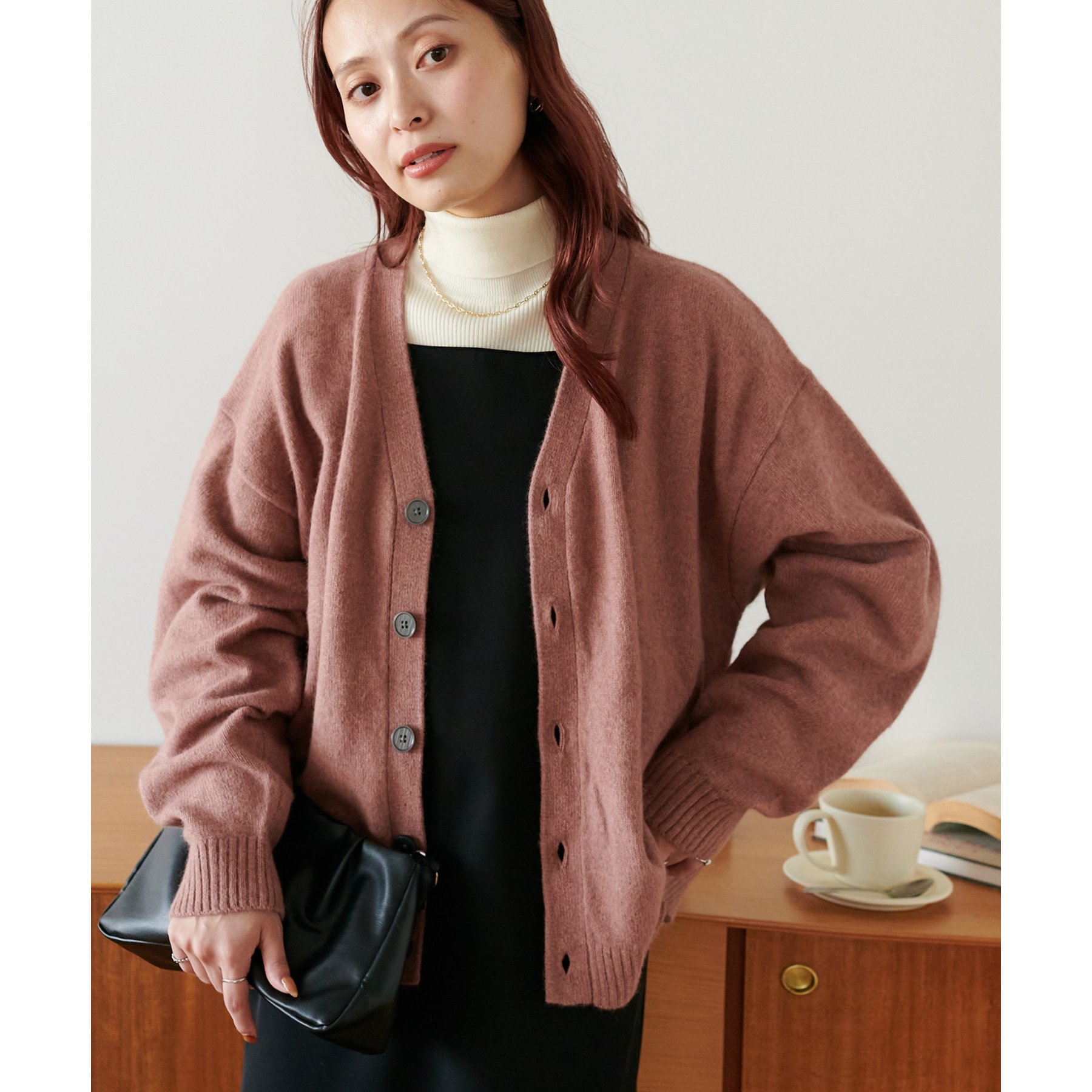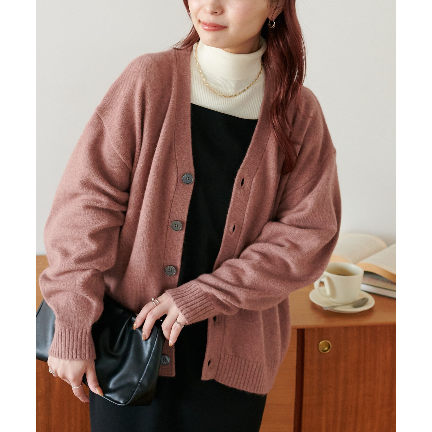 シンプルながらも程よい抜け感のあるVネックデザインが、顔まわりをすっきり見せてくれるカーディガン。
