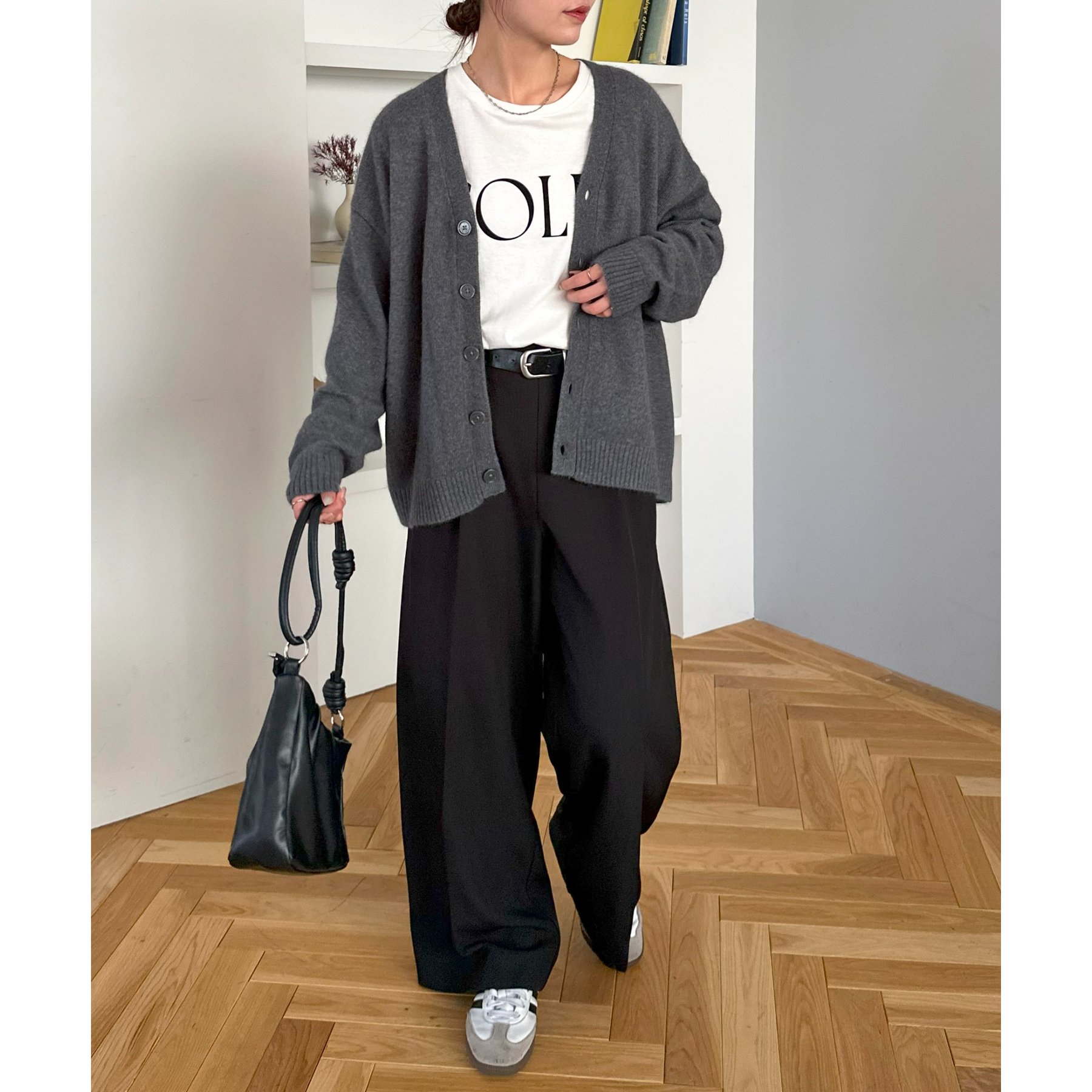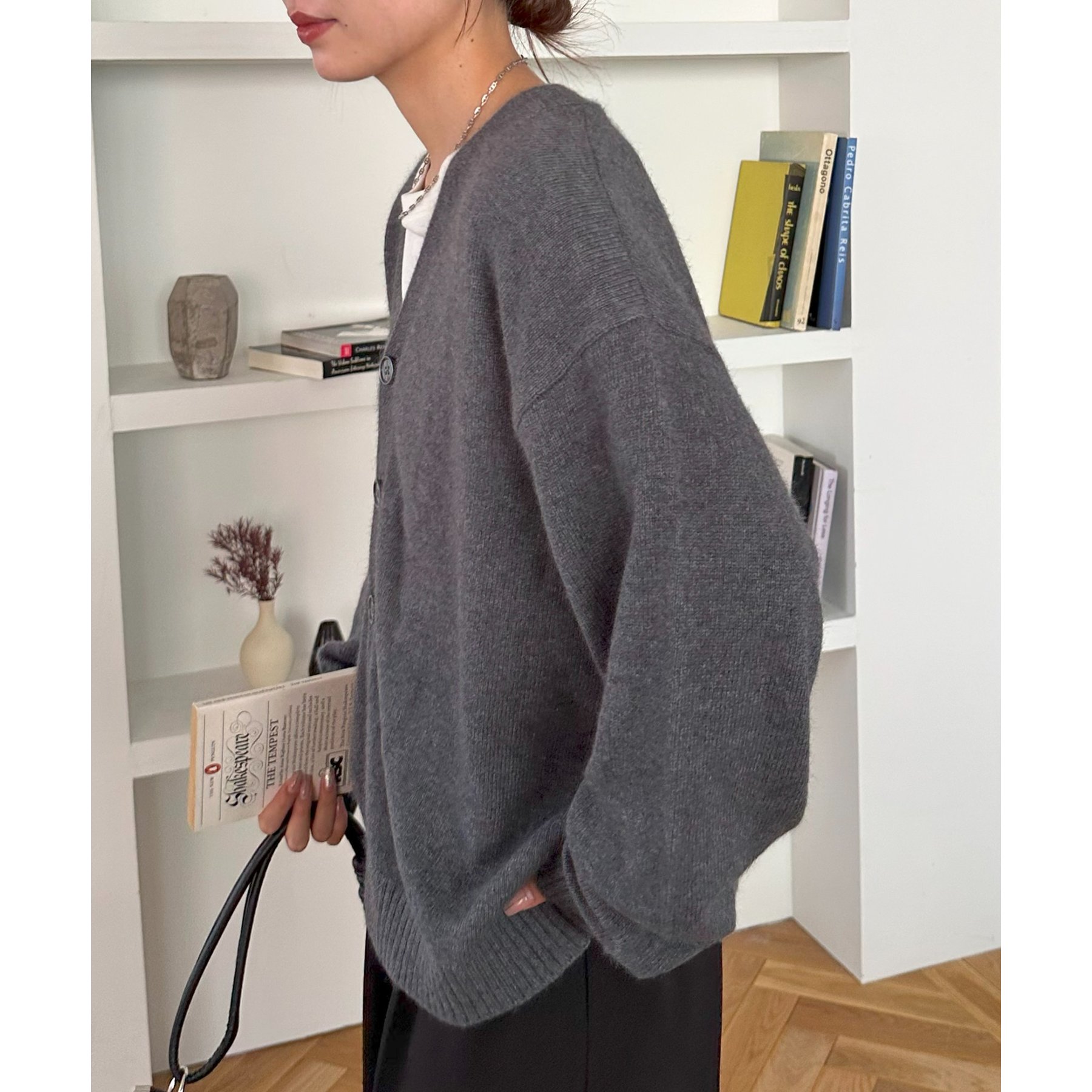 程よくゆとりもあるアイテムなので、室内などの軽い羽織としてもおすすめ◎