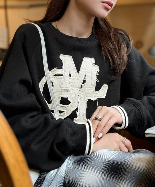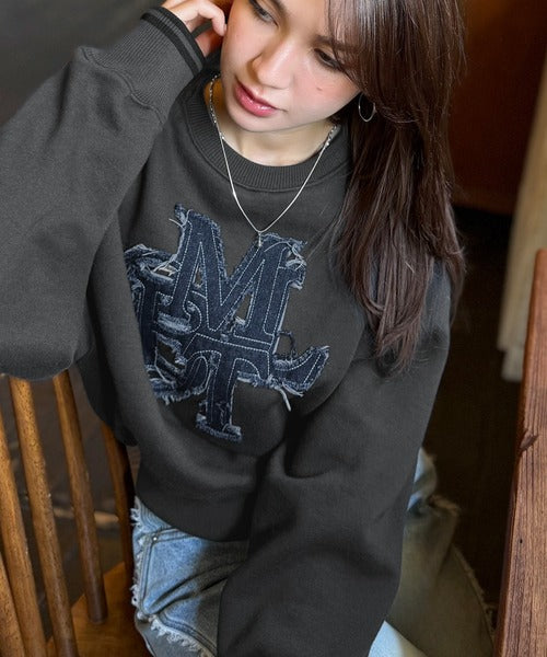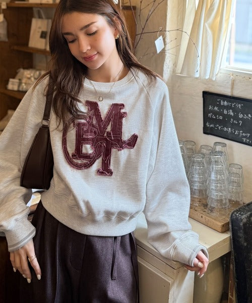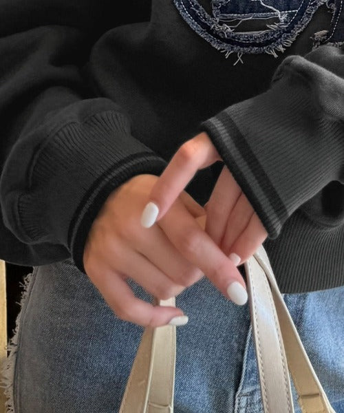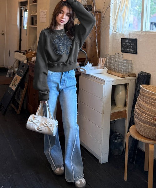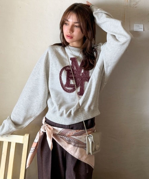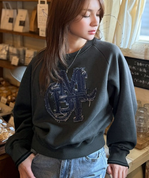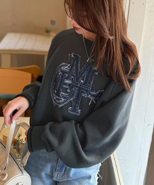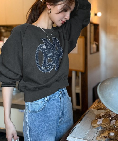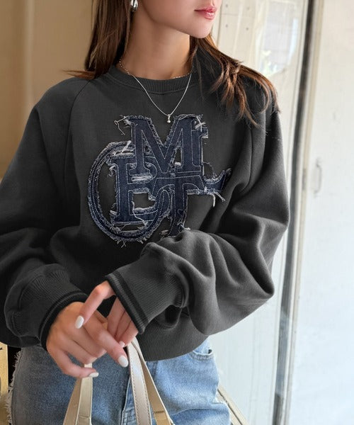 【mily bilet】ディティールの遊び心に一目ぼれ。デニムフリンジワッペン裏起毛ショート丈プルオーバー mi1329066