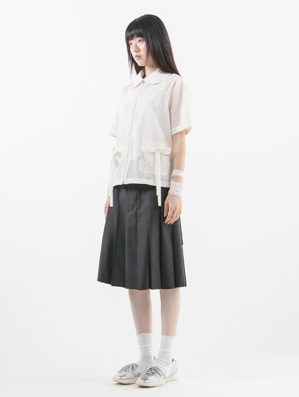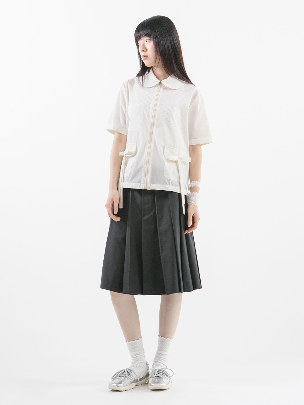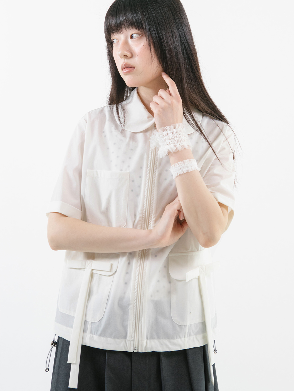 ROUND COLLAR NYLON ZIP-UP [WHITE]